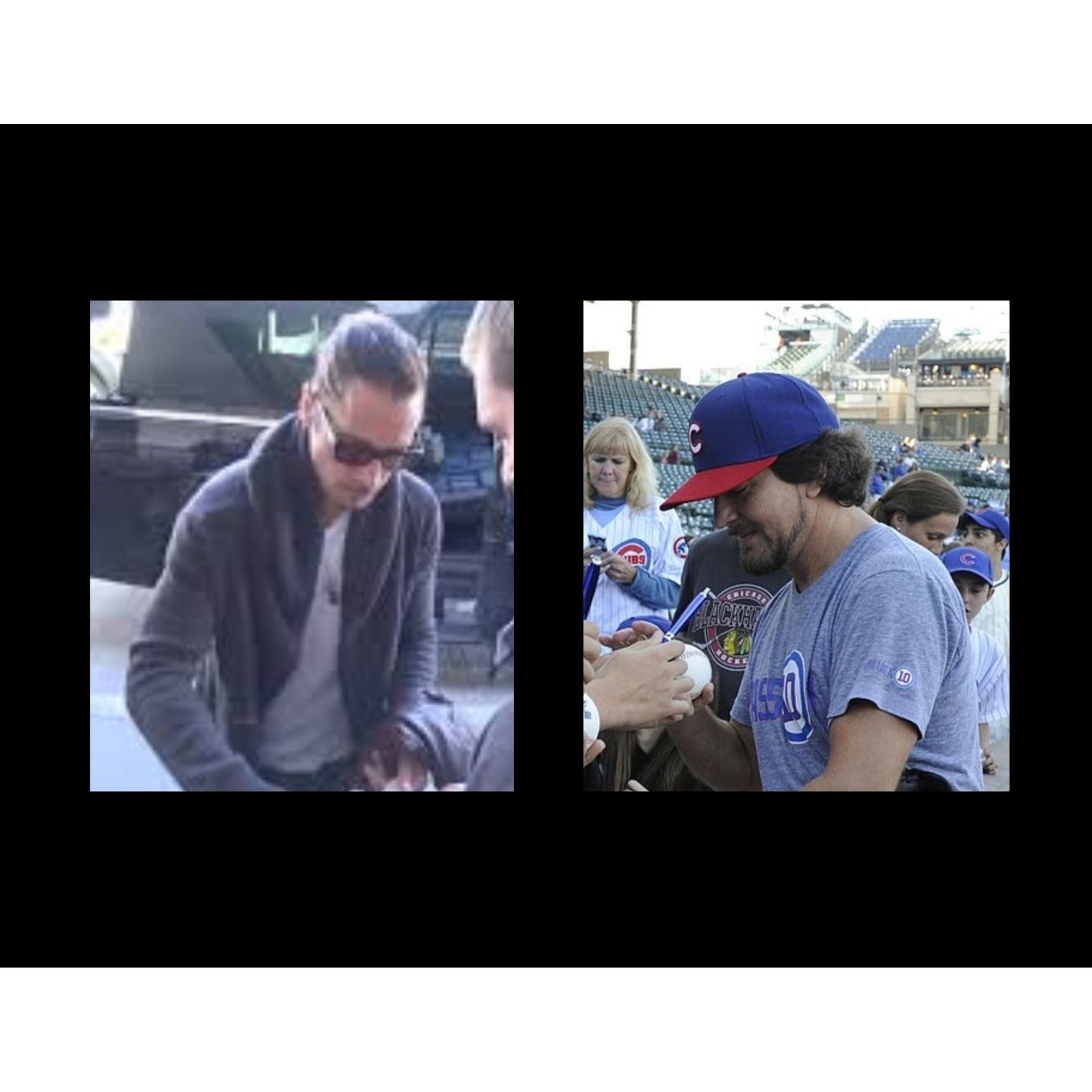 Eddie Vedder signed on July 24, 2014. Before throwing out the ceremonial first pitch in a game between the Chicago Cubs and the San Diego Padres at Wrigley Field in Chicago, Illinois.