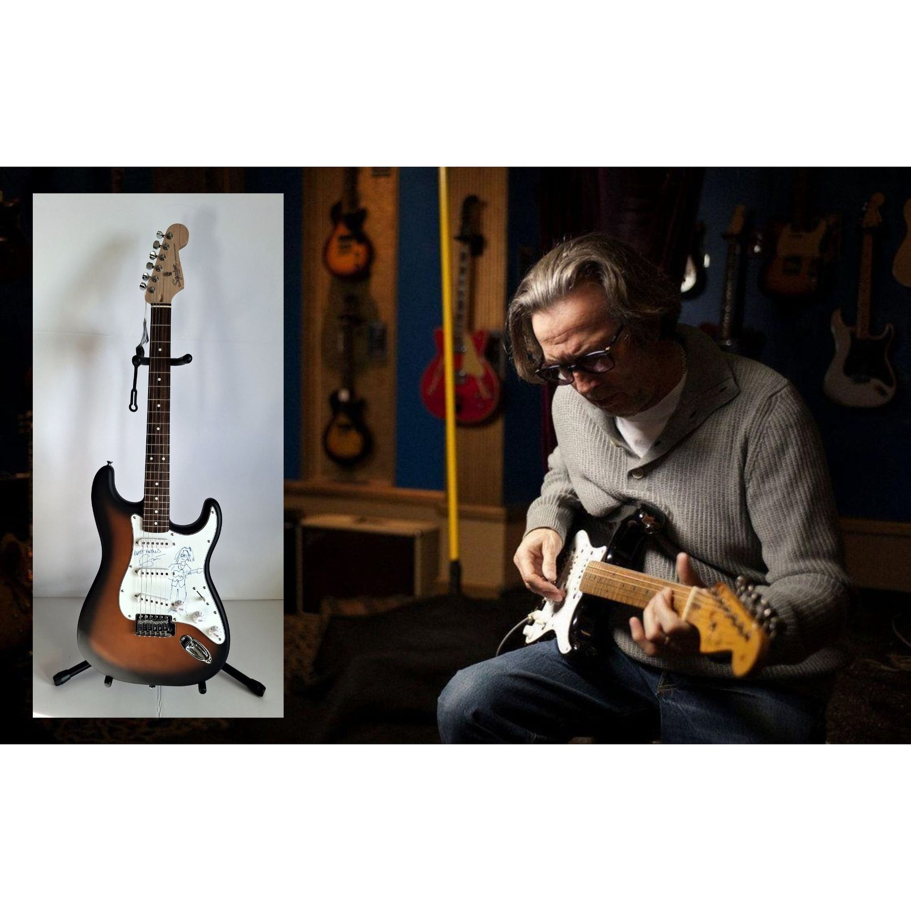 Eric Clapton incredible self sketch & beautiful signature, Fender Stratocaster electric guitar signed with proof