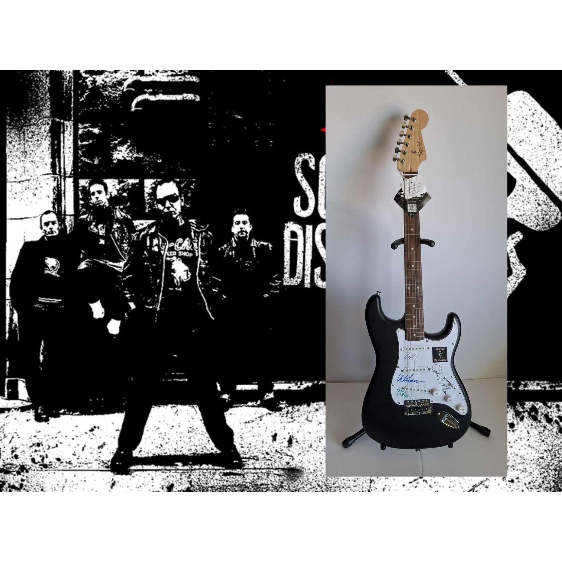 Social Distortion Mike Ness, David Hidalgo, Jonh Maurer, Dennis Danell Fender Stratocaster Squier electric guitar signed with proof $2995