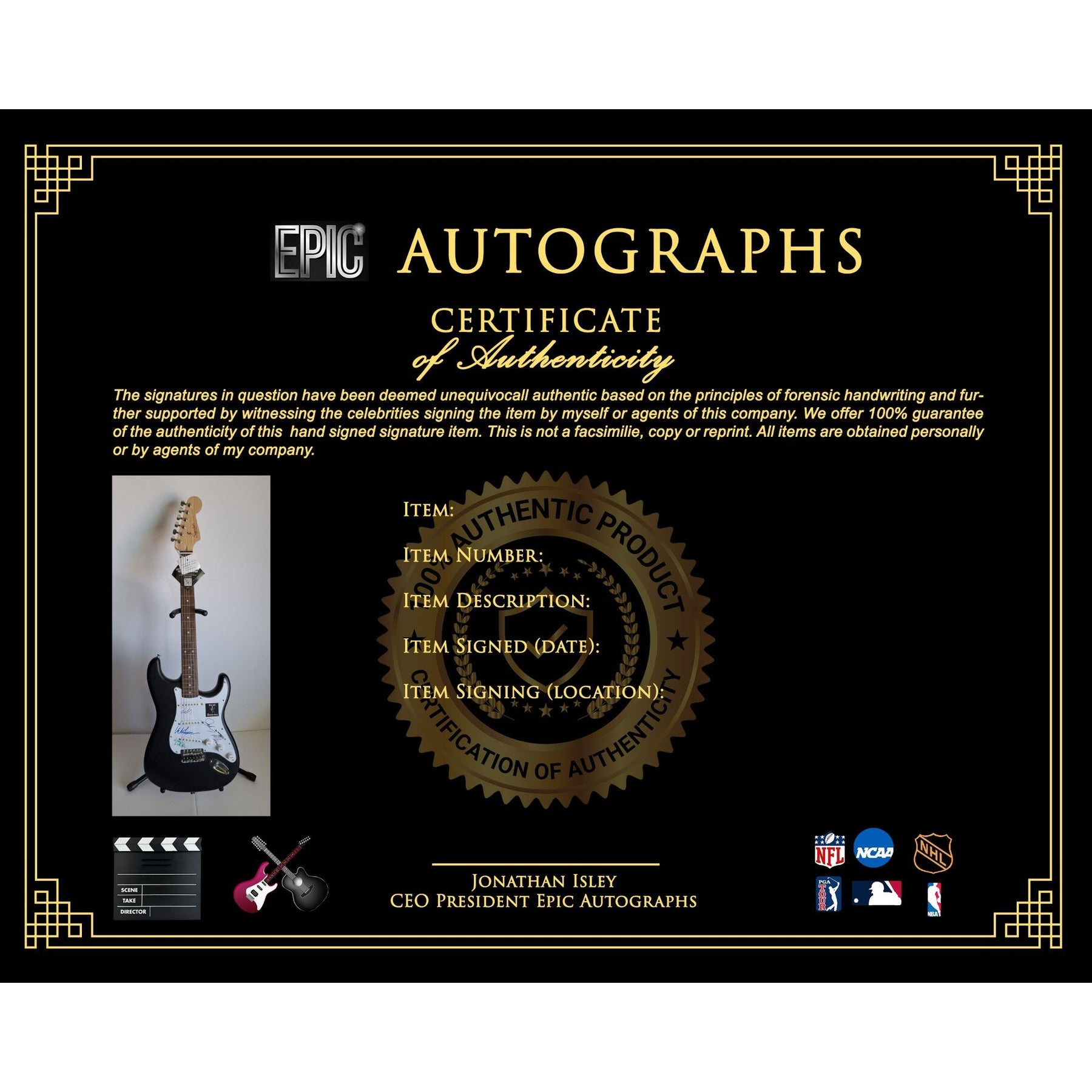 #2 you will receive a certificate of authenticity which will explain the date and location of where I obtained the signatures. Many companies offer an opinion of authenticity I am able to offer 100% guarantee of authenticity as I witness the item being signed personally and I support this claim with signing photos as well as the exact information of where the item was obtained I must say if you take a logical perspective you're getting much more from me than you would get from the so-called authentication companies that give nothing more than an opinion based on no scientific criteria whatsoever by the way.
