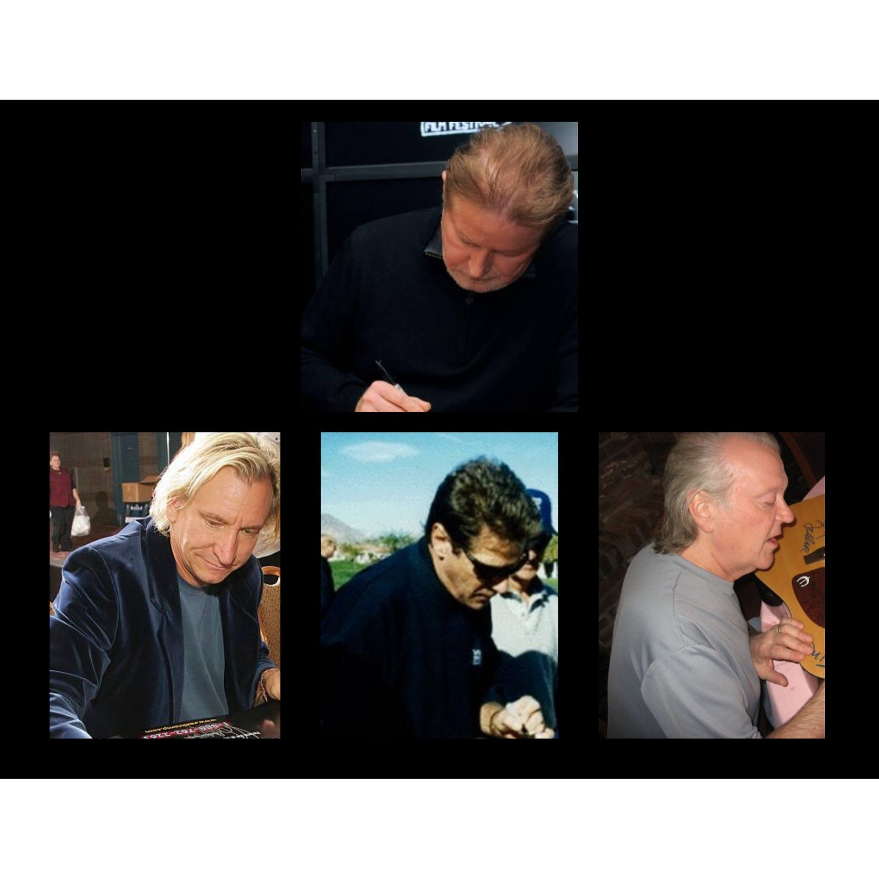 Eagles Don Henley, Don Felder, Glenn Frey, Joe Walsh, Randy Meisner with lyrics signed with proof 12" tambourine