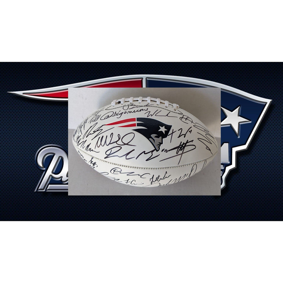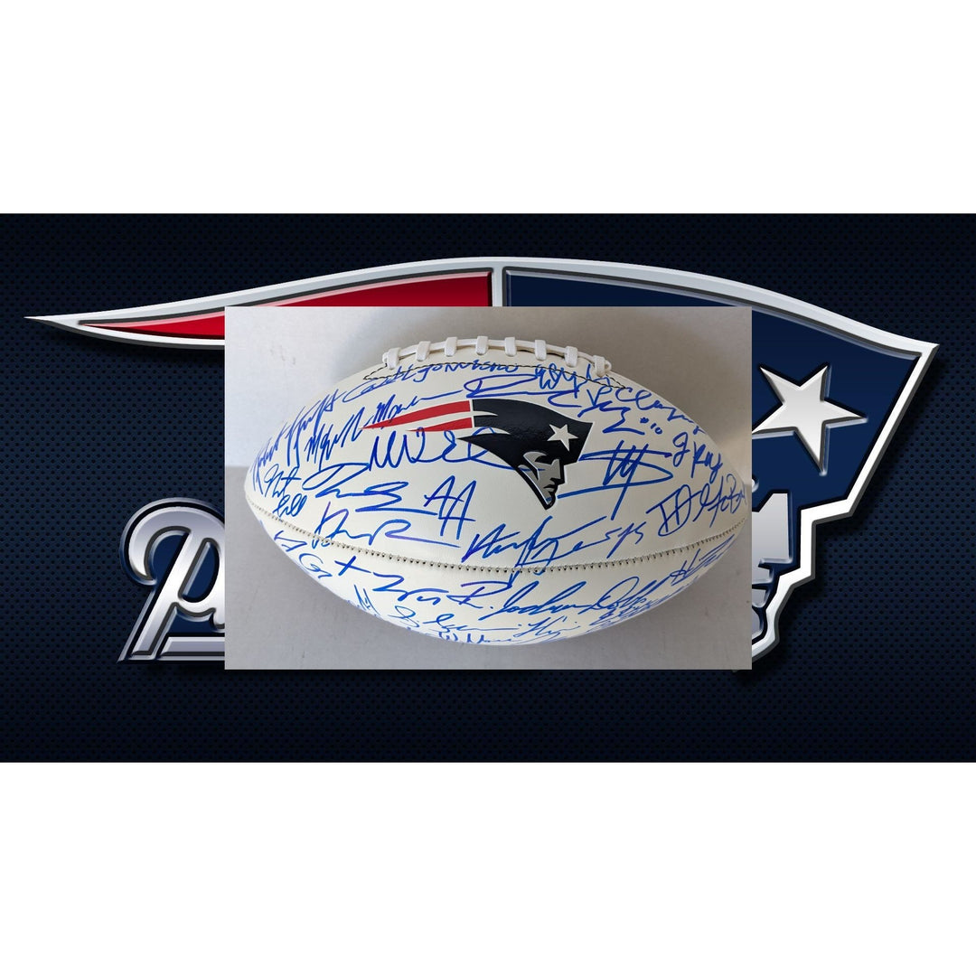 New England Patriots full size logo football 2025 team signed football Maye, Vrabel, Kraft, Henderson (40 plus sigs) with proof