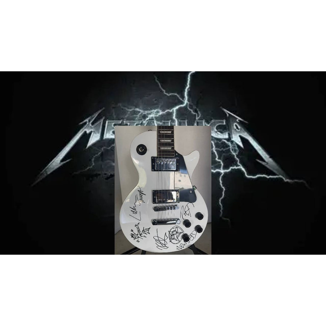 Metallica Jason Newsted Lars Ulrich Robert Trujillo James Hetfield Kirk Hammett white les paul electric guitar signed with proof
