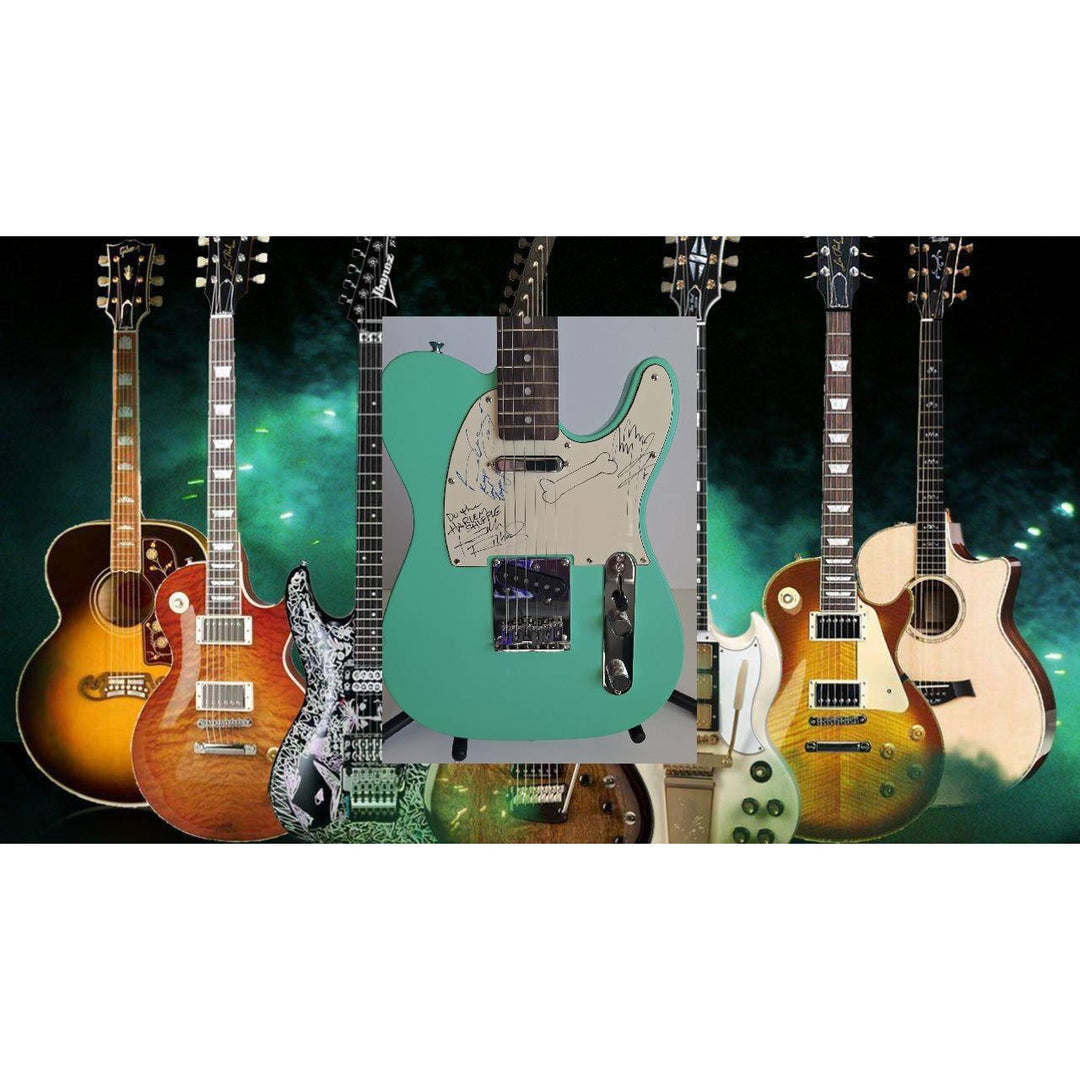 Jimmy Page, Brian May, & Keith Richards sea foam green Fender telecaster electric guitar signed with proof