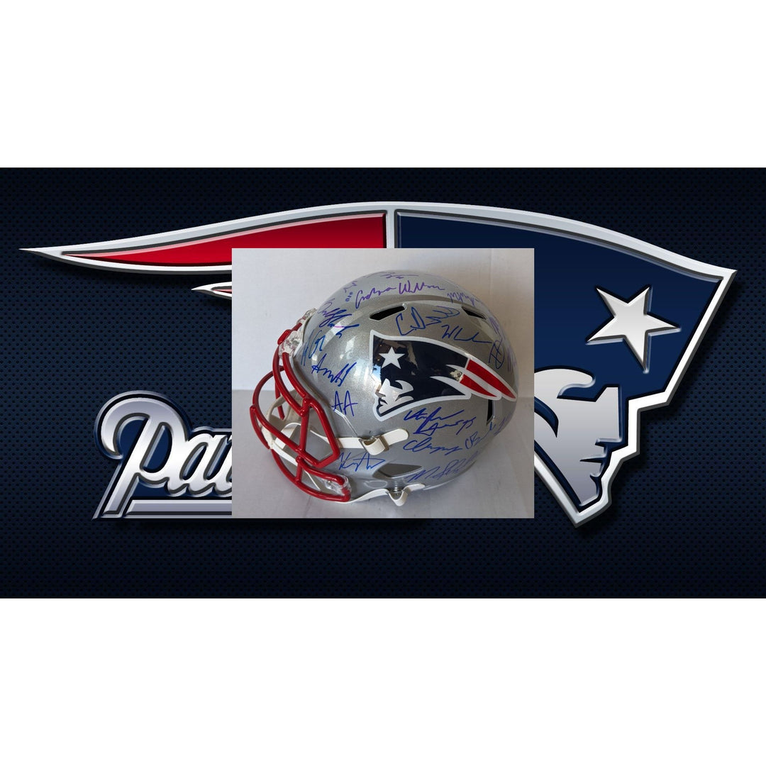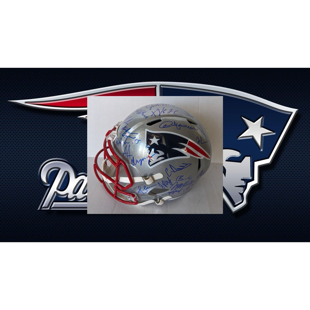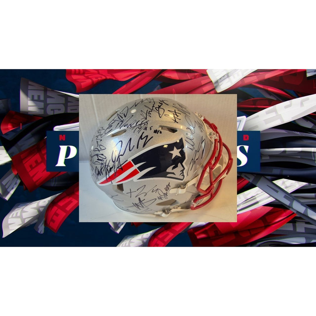 New England Patriots Riddell Speed Authentic Game Model helmet 2025 team signed with (40 plus sigs) and proof
