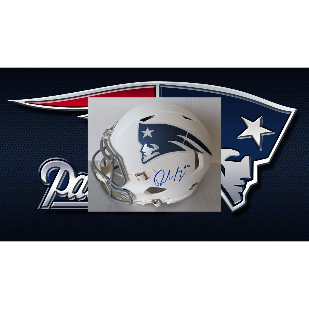 New England Patriots Riddell Speed Authentic Game Model helmet 2025 (white Rivalries collection) team signed with (40 plus sigs) and proof