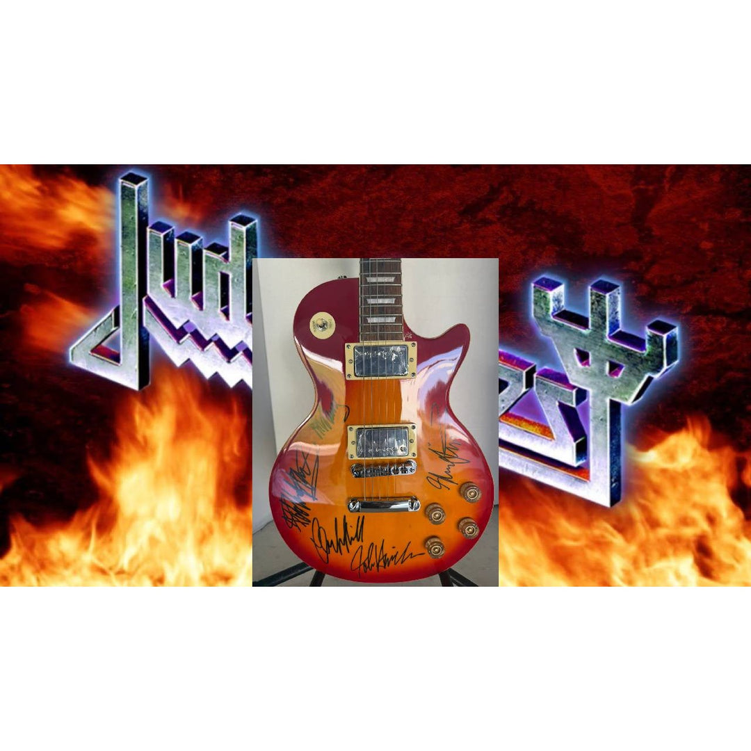 Judas Priest Rob Halford KK Downing Glenn Tipton Richie Faulkner Ian Hill Cherry les paul electric guitar signed with proof