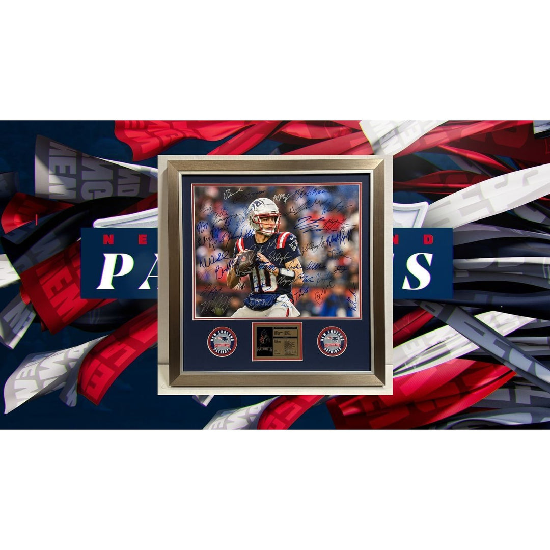 New England Patriots 16x20 photo Drake Maye 2025 team signed with (40 plus sigs) proof and a museum quality frame