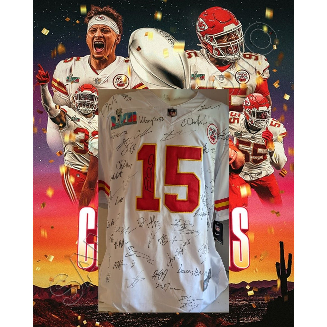 Kansas City Chiefs LVII Super Bowl champs 2022, 38-35 over the Eagles game model jersey team signed with proof