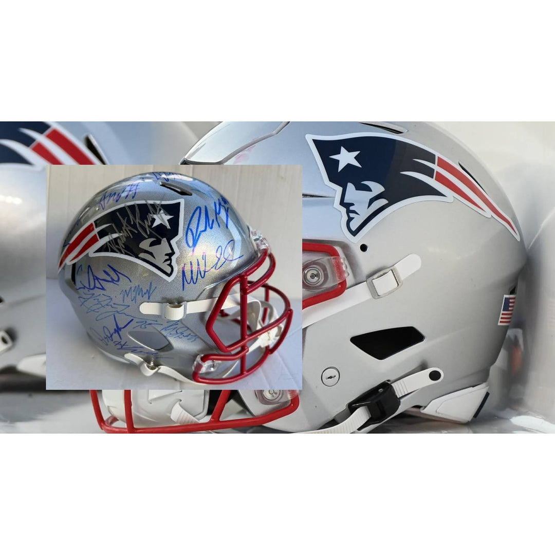 New England Patriots 2025 Drake Maye, Mike Vrabel, Kayshon Boutte, Hunter Henry, Stefon Diggs, Christian Gonzalez, team signed helmet
