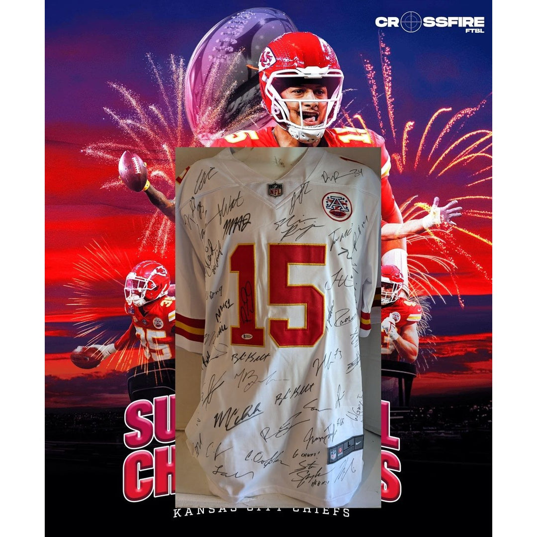 Kansas City Chiefs Patrick Mahomes , Travis Kelce, & Andy Reid Super Bowl Champions LVIII team signed jersey (2023) with proof