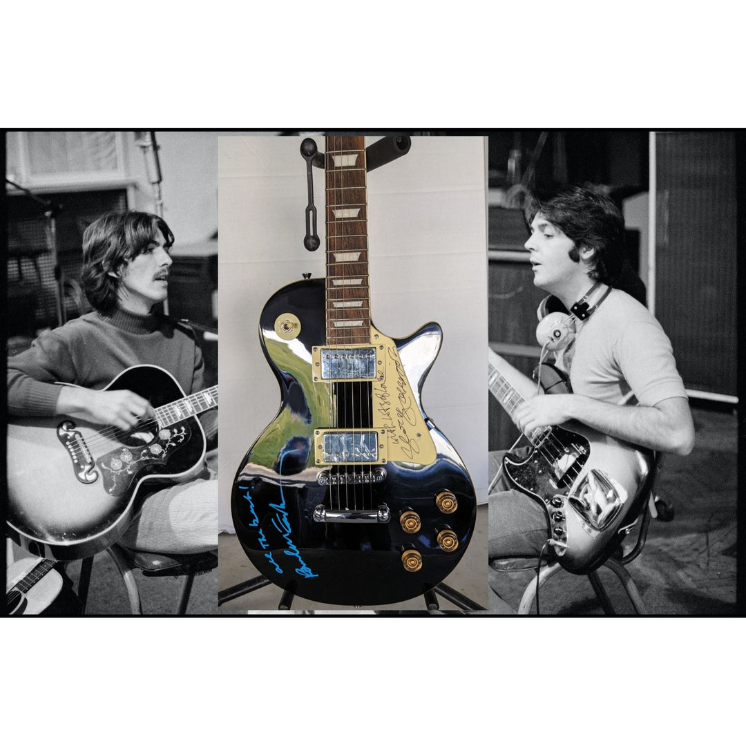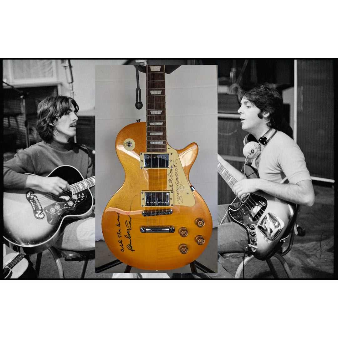 Paul McCartney and George Harrisson, The Beatles les paul electric guitar signed with proof