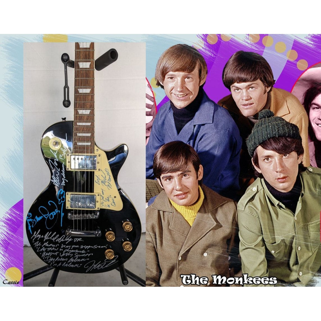 The Monkees Mickey Dolenz, Davey Jones, Michael Nasemith, and Peter York Black Les Paul signed with proof & lyrics