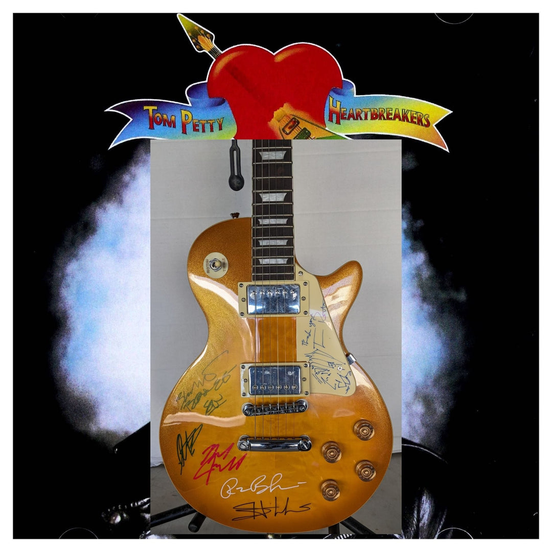 Tom Petty signed with sketch and the Heartbreakers vintage les paul full size electric guitar signed with proof
