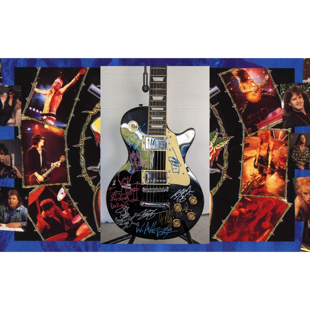 Guns N Roses Axl Rose, Matt Sorum w/ sketch, Slash w/ sketch, Izzy Stradlin, Duff McKagan, Steve Adler black les paul electric guitar