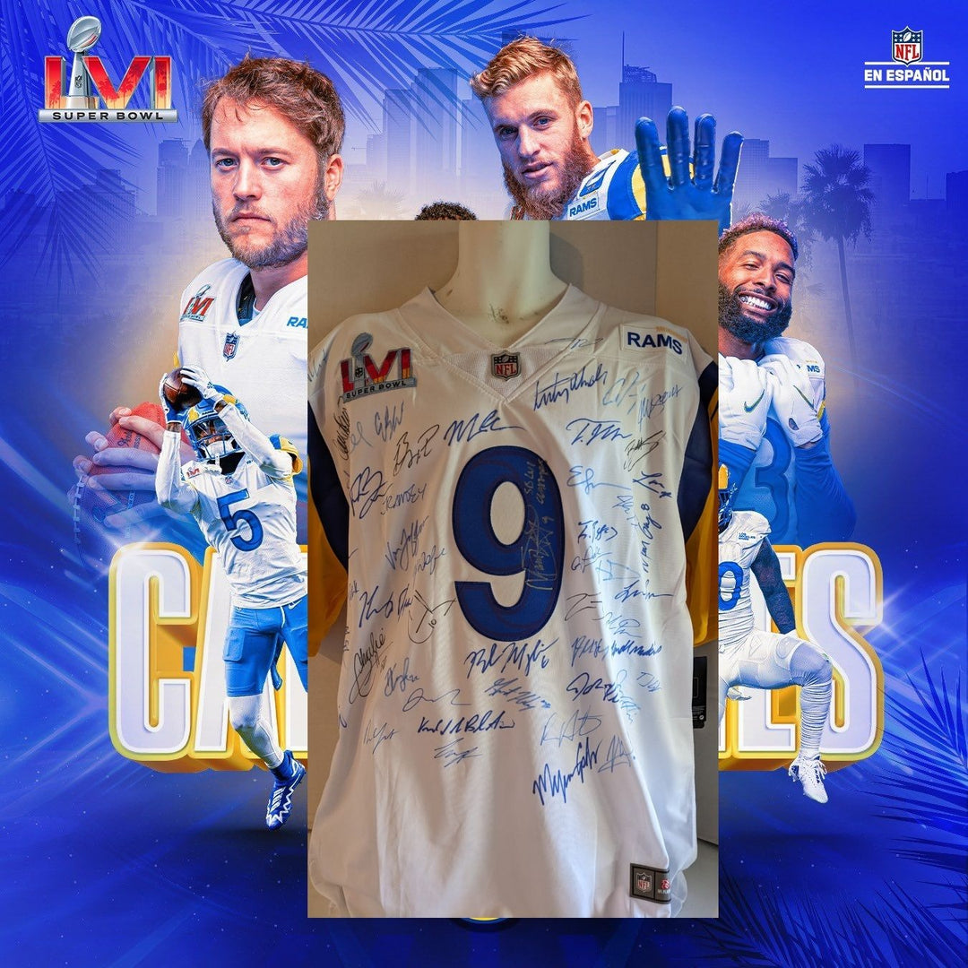 Mathew Stafford, Cooper Kupp, Aaron Donald, Sean McVay Los Angeles Rams 2021-22 Super Bowl Champions team signed jersey with proof