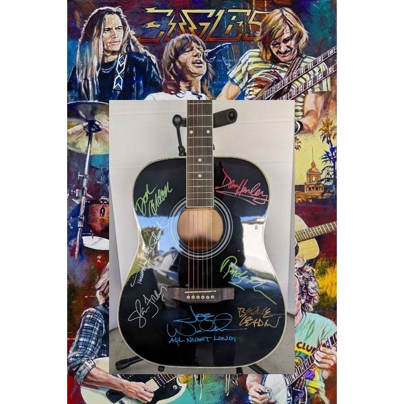 The Eagles Don Henley, Joe Walsh, Timothy B Schmidt, Randy Meisner, Don Felder, Bernie Leaden band signed full size acoustic guitar