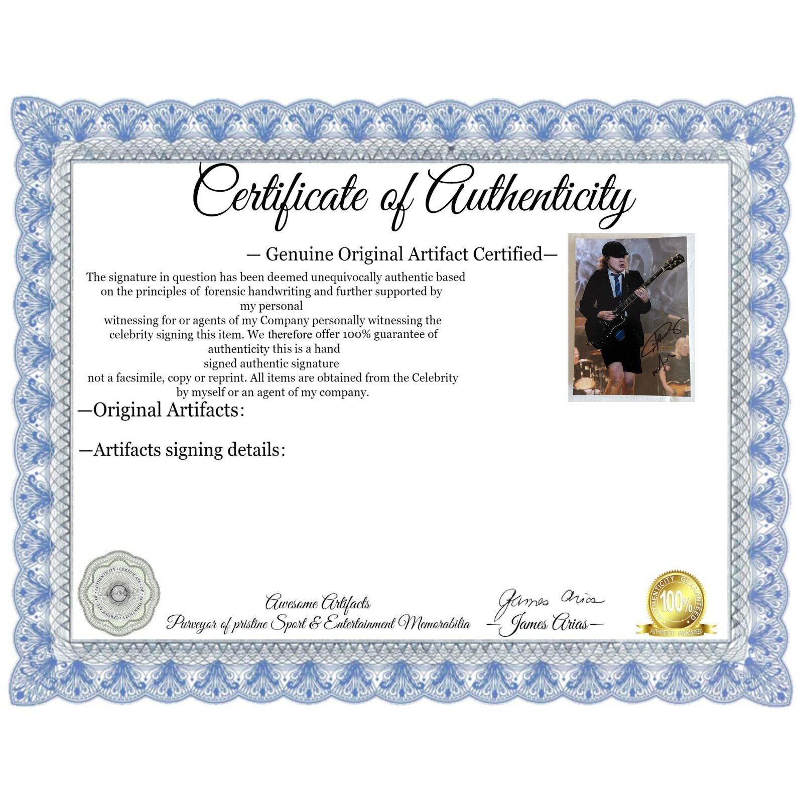 Angus Young 5x7 photo signed with proof