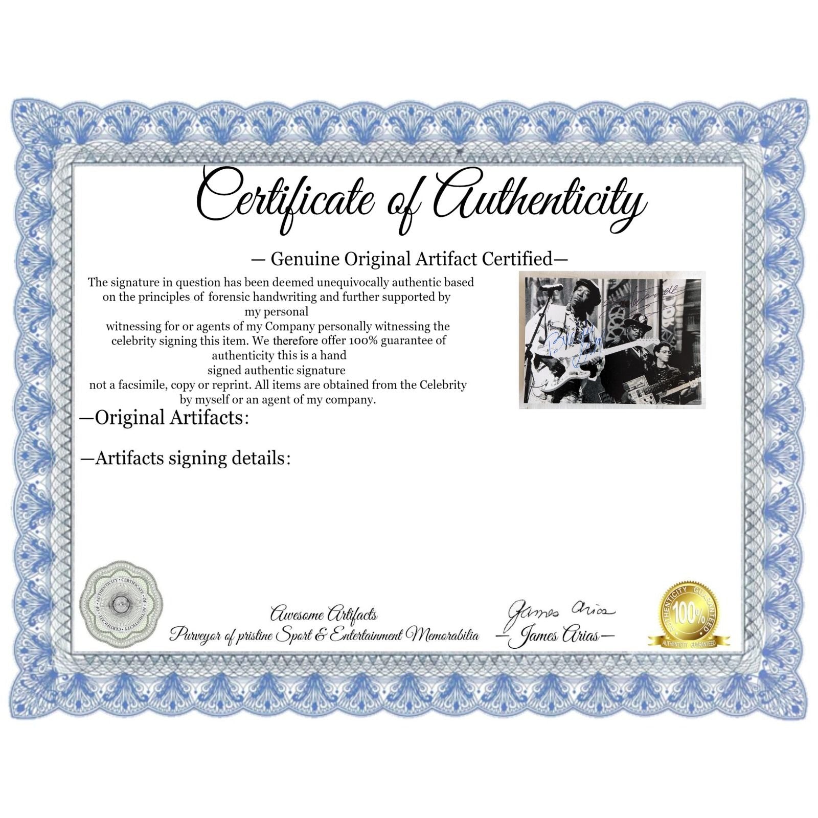 What I would like to express to my customers and my future customers is that I always put the customer first and I can assure you that when dealing with Awesome Artifacts you will receive excellent customer service and genuine products which are supported by factual signing information as well as photos of the celebrity signing