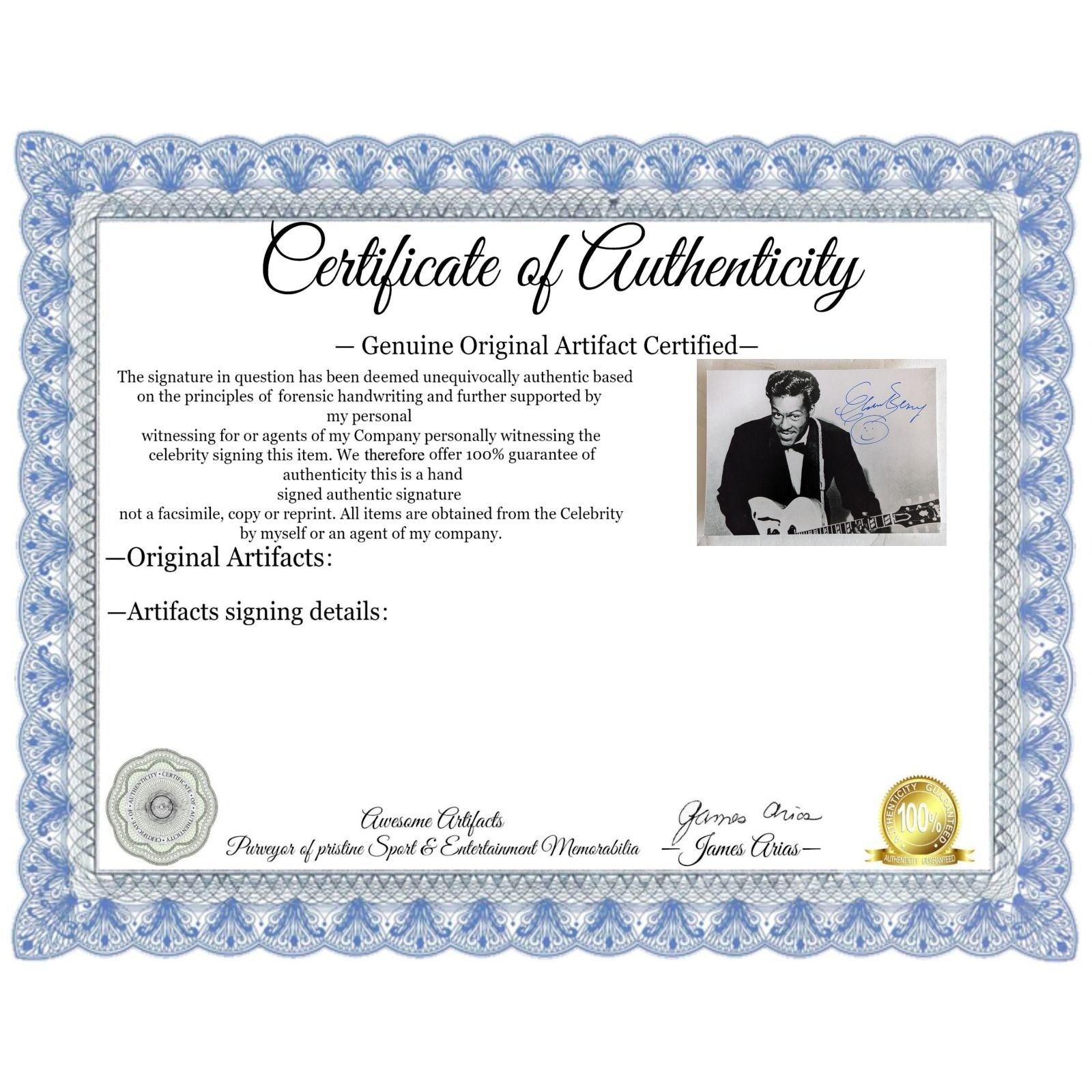 What I would like to express to my customers and my future customers is that I always put the customer first and I can assure you that when dealing with Awesome Artifacts you will receive excellent customer service and genuine products which are supported by factual signing information as well as photos of the celebrity signing