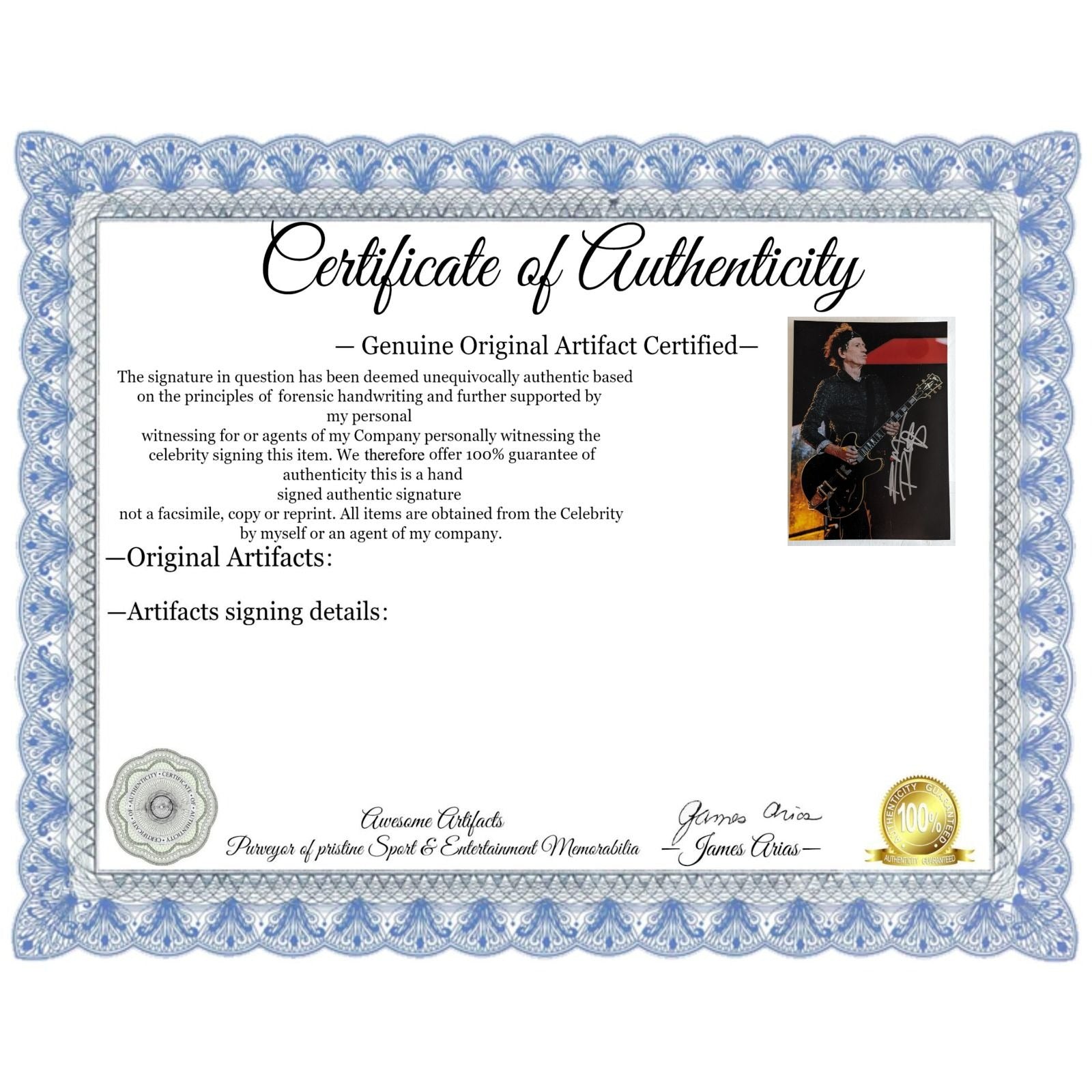 What I would like to express to my customers and my future customers is that I always put the customer first and I can assure you that when dealing with Awesome Artifacts you will receive excellent customer service and genuine products which are supported by factual signing information as well as photos of the celebrity signing