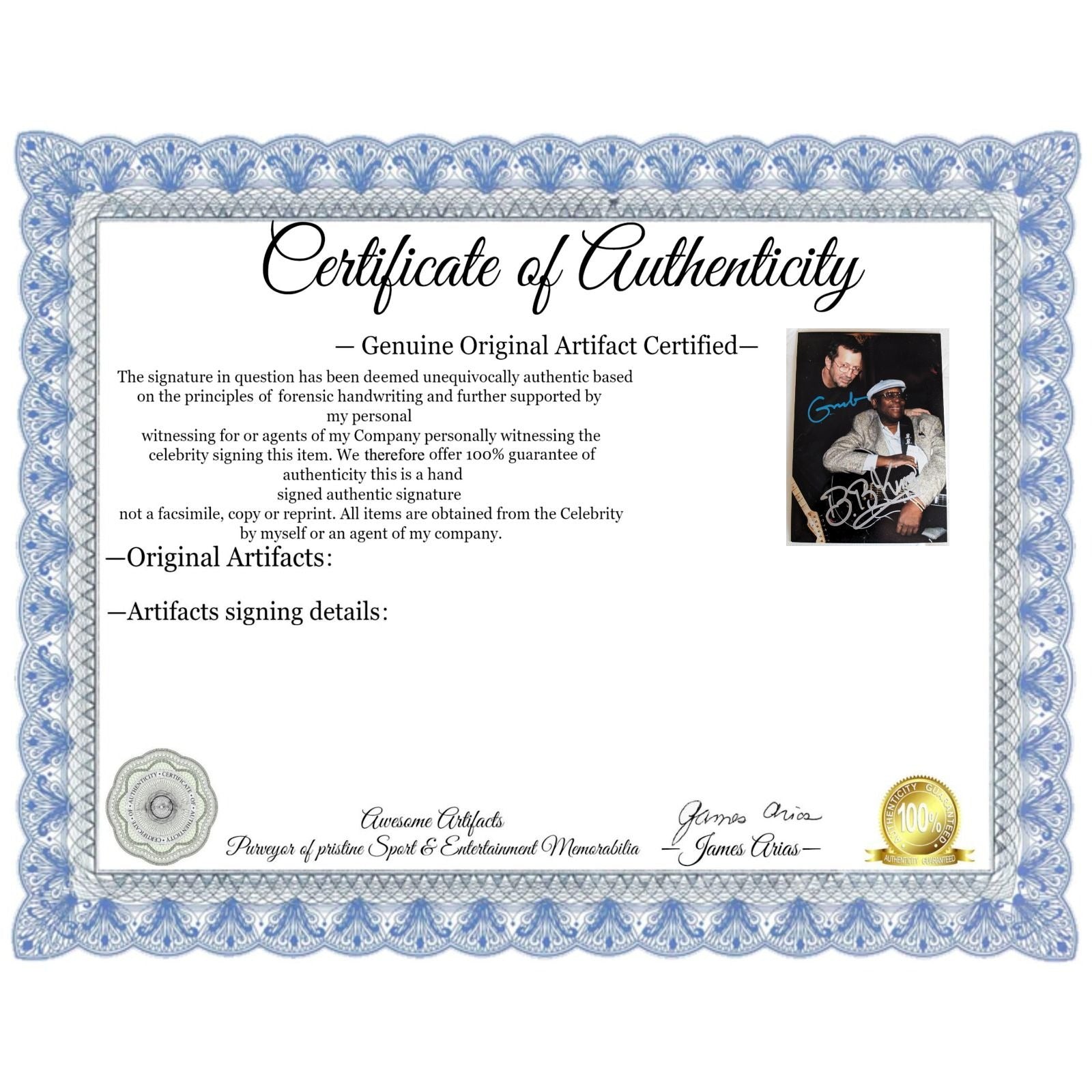 What I would like to express to my customers and my future customers is that I always put the customer first and I can assure you that when dealing with Awesome Artifacts you will receive excellent customer service and genuine products which are supported by factual signing information as well as photos of the celebrity signing