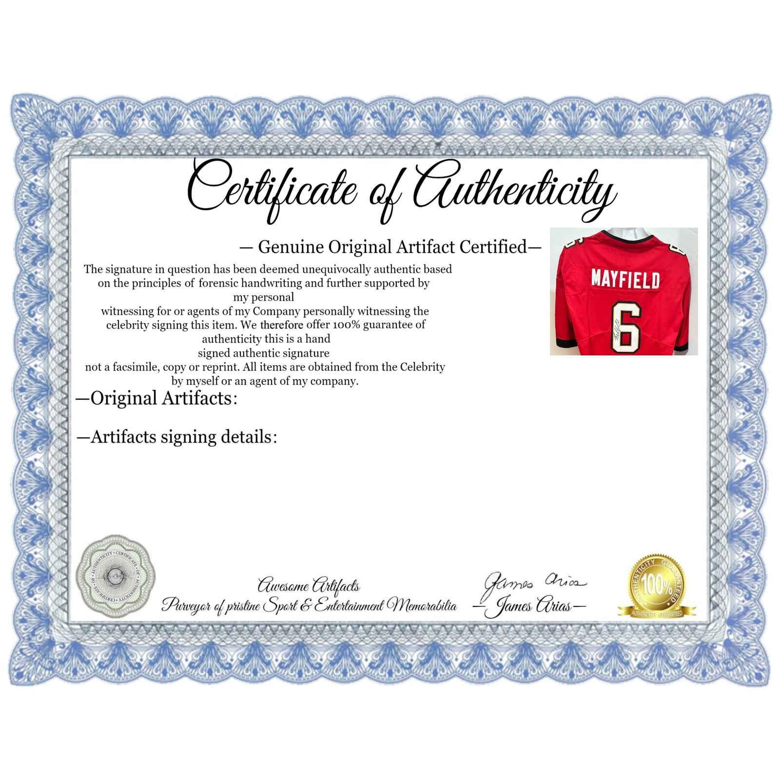 #2 you will receive a certificate of authenticity which will explain the date and location of where I obtained the signatures. Many companies offer an opinion of authenticity I am able to offer 100% guarantee of authenticity as I witness the item being signed personally and I support this claim with signing photos as well as the exact information of where the item was obtained I must say if you take a logical perspective you're getting much more from me than you would get from the so-called authentication companies that give nothing more than an opinion based on no scientific criteria whatsoever by the way