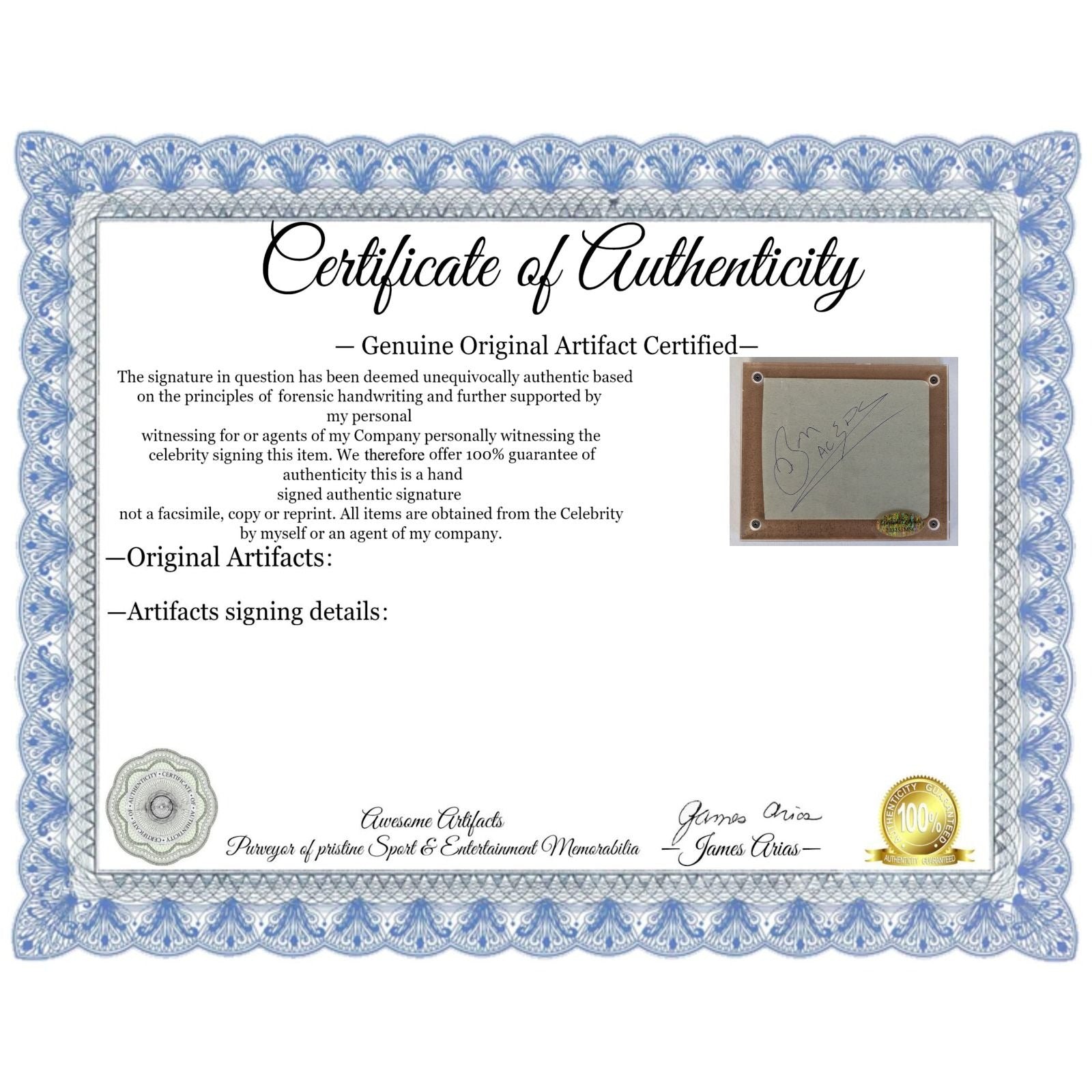 #3 All items which I sell come with a Certificate of Authenticity and with your certificate I will provide specific details, the date and location of where I obtained the signature(s). The nice thing here is I do not offer an opinion of authenticity rather you receive a guarantee of authenticity which I am able to offer as I have witnessed the items which I am offering actually being signed by the sports figure or celebrity.