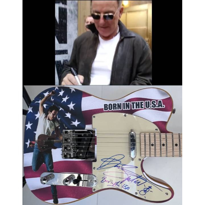 Bruce Springsteen signed with inscription and hand sketch one of a kind full size electric guitar signed with proof
