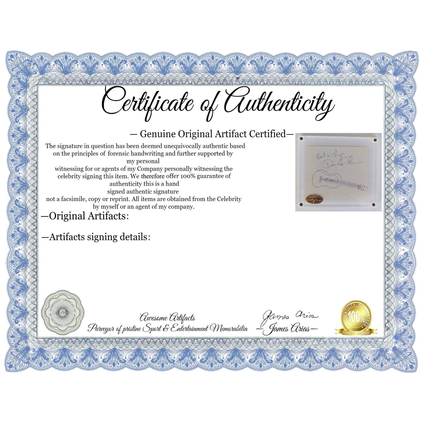 #3 All items which I sell come with a Certificate of Authenticity and with your certificate I will provide specific details, the date and location of where I obtained the signature(s). The nice thing here is I do not offer an opinion of authenticity rather you receive a guarantee of authenticity which I am able to offer as I have witnessed the items which I am offering actually being signed by the sports figure or celebrity.