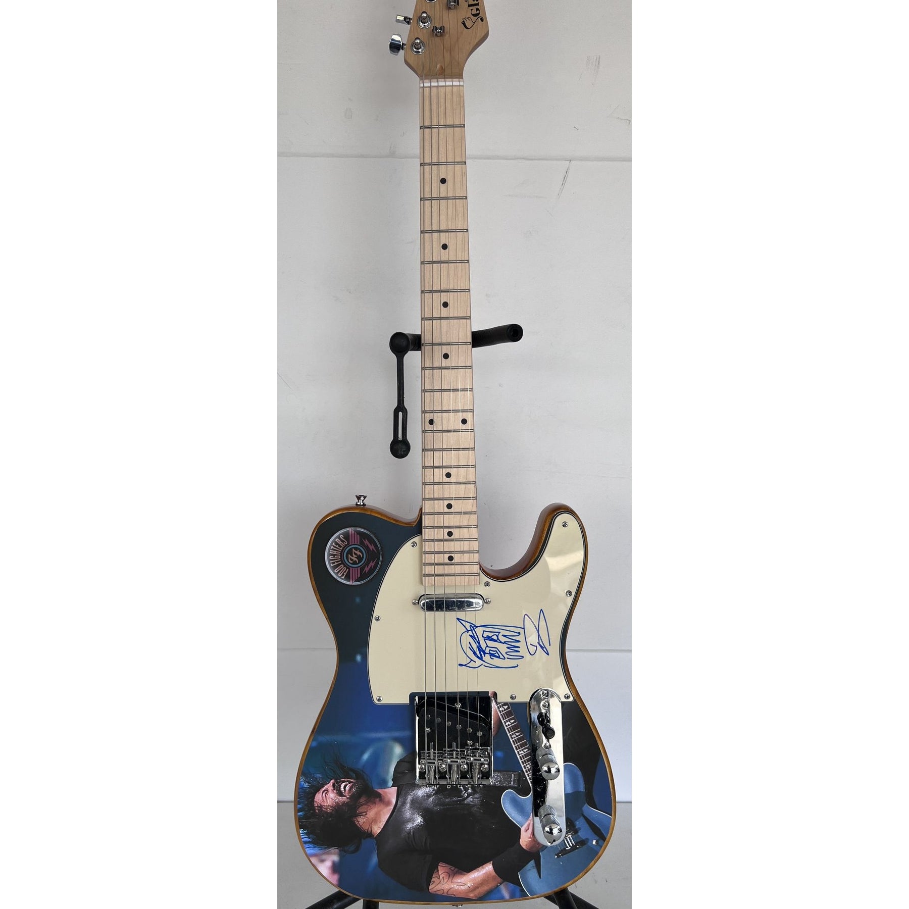 David Grohl Foo Fighters Nirvana with hand made sketch  one of a kind full size electric guitar signed with proof.