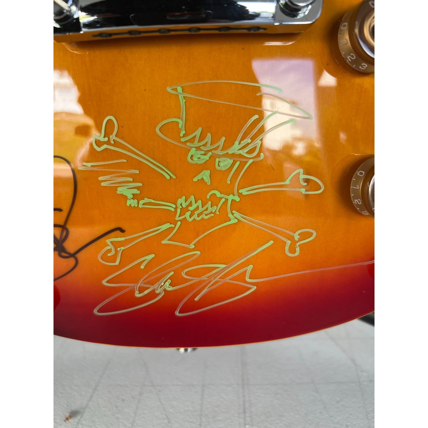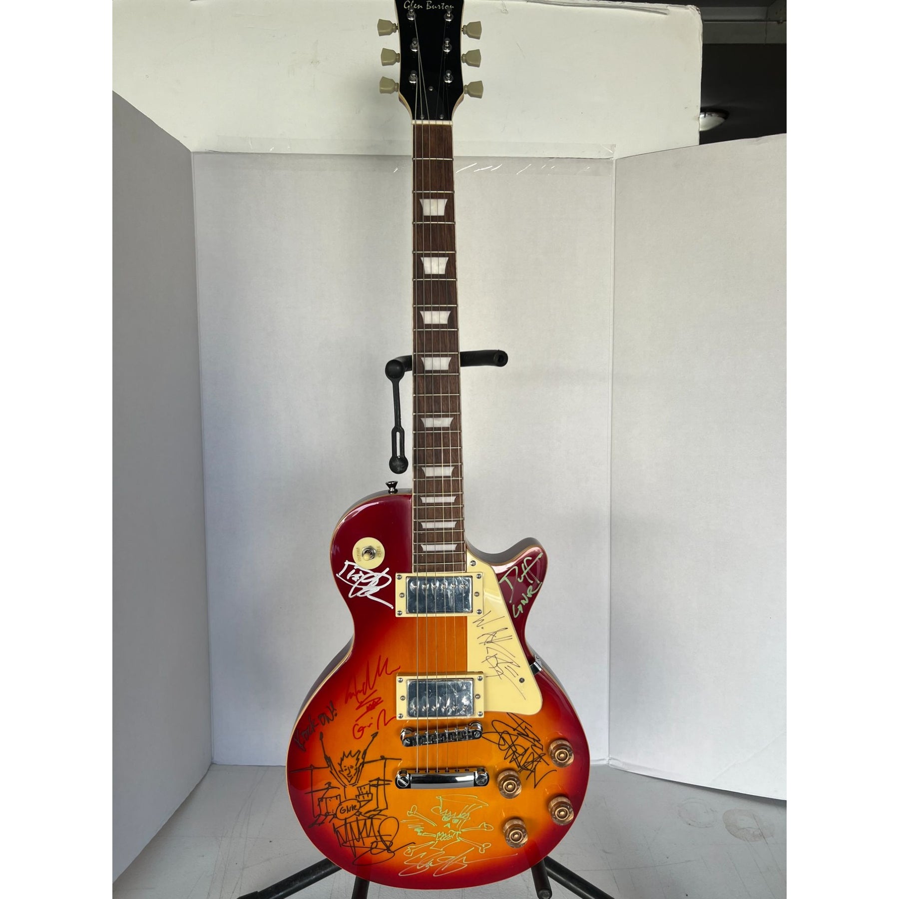Guns N Roses, Axl Rose, Matt Sorum, Slash, Izzy Stradlin, Duff McKagan, Steve Adler cherry les paul electric guitar signed with proof $8995