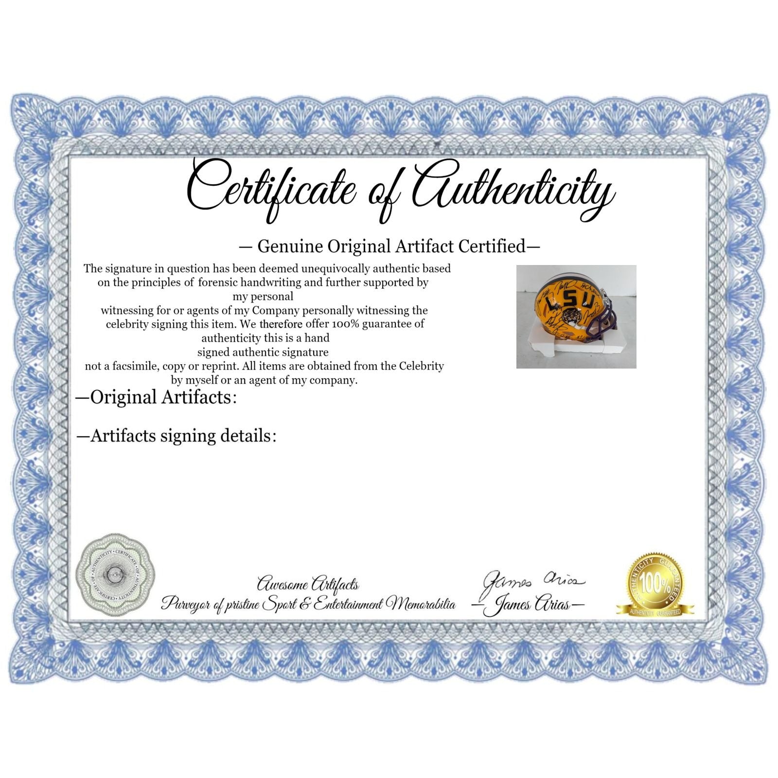 And with your certificate I will provide specific details date and location of where I obtained the signature(s). The nice thing here is I do not offer an opinion of authenticity rather you receive a guarantee of authenticity which I am able to offer as I have witnessed the items which I am offering actually being signed by the sports figure or celebrity.