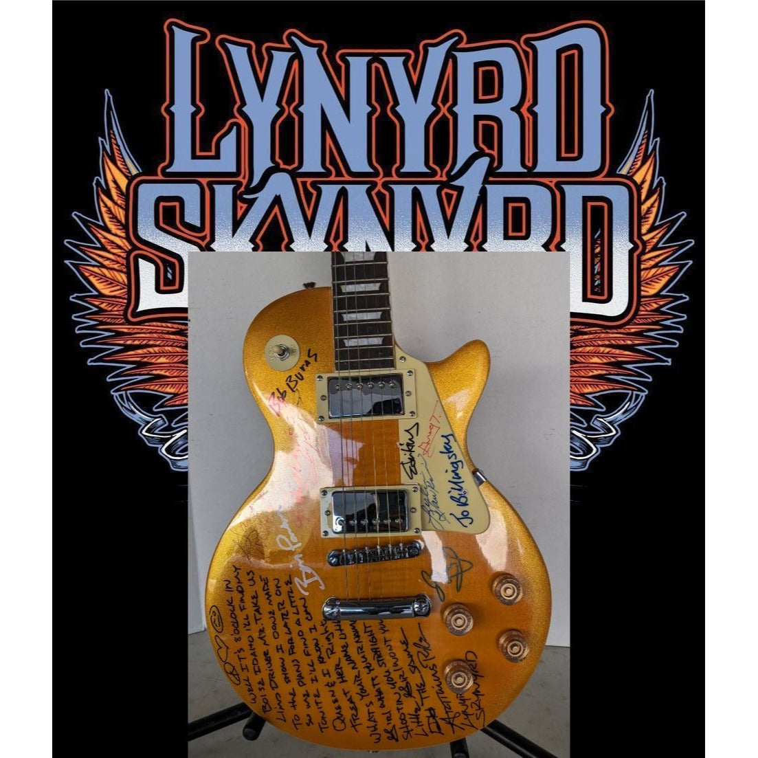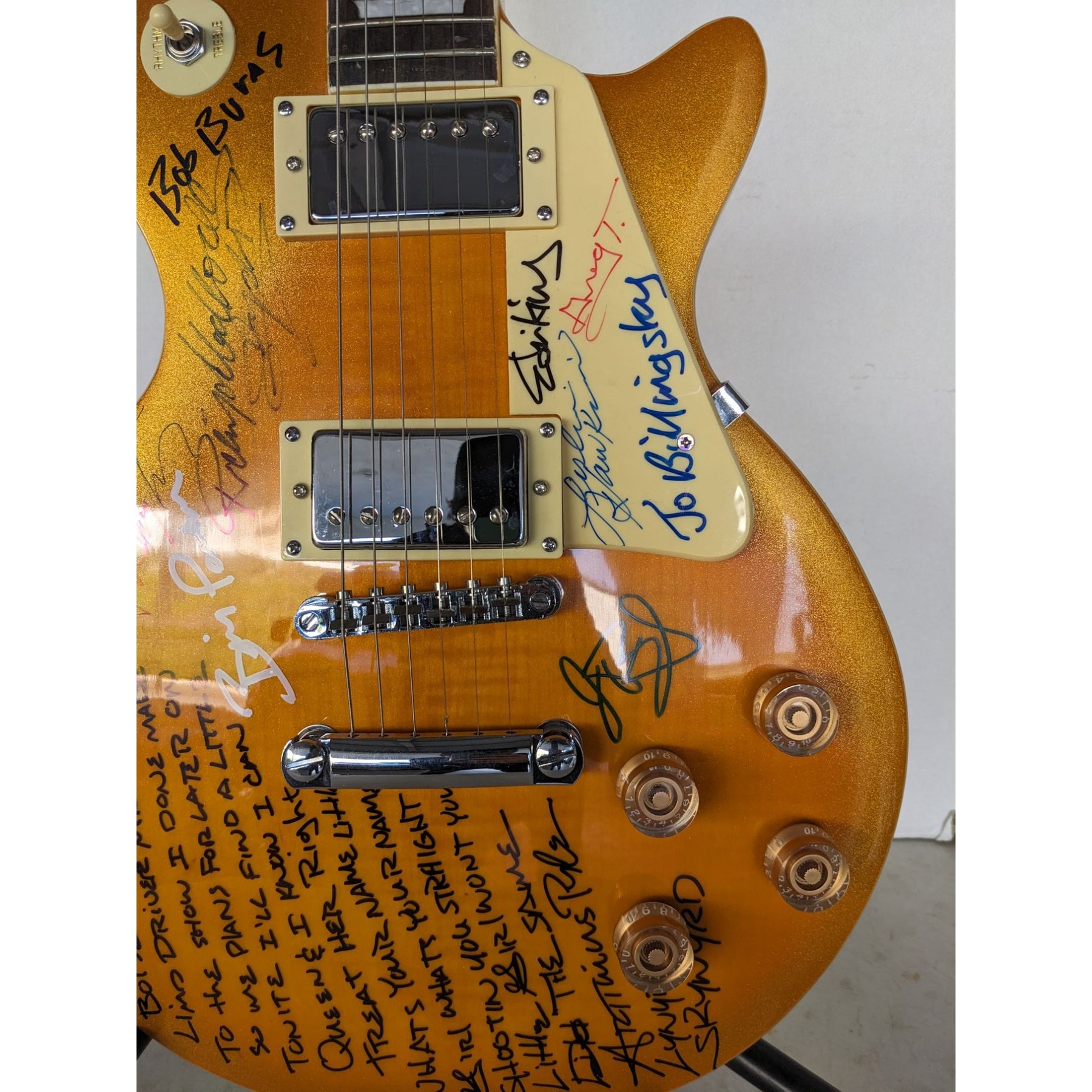 Lynrd Skynyrd black les paul electric guitar signed by 10 with lyrics incredible!