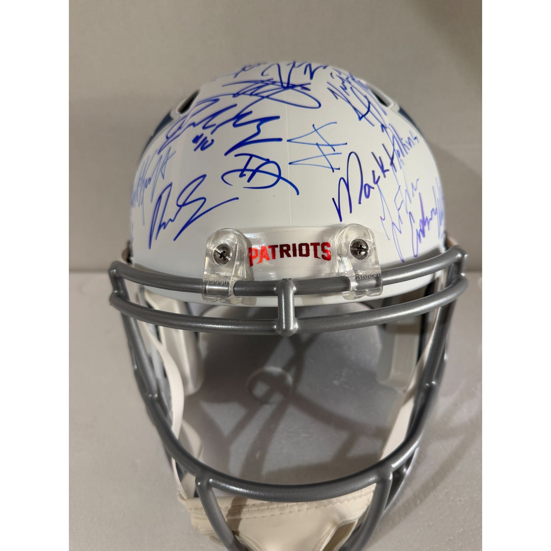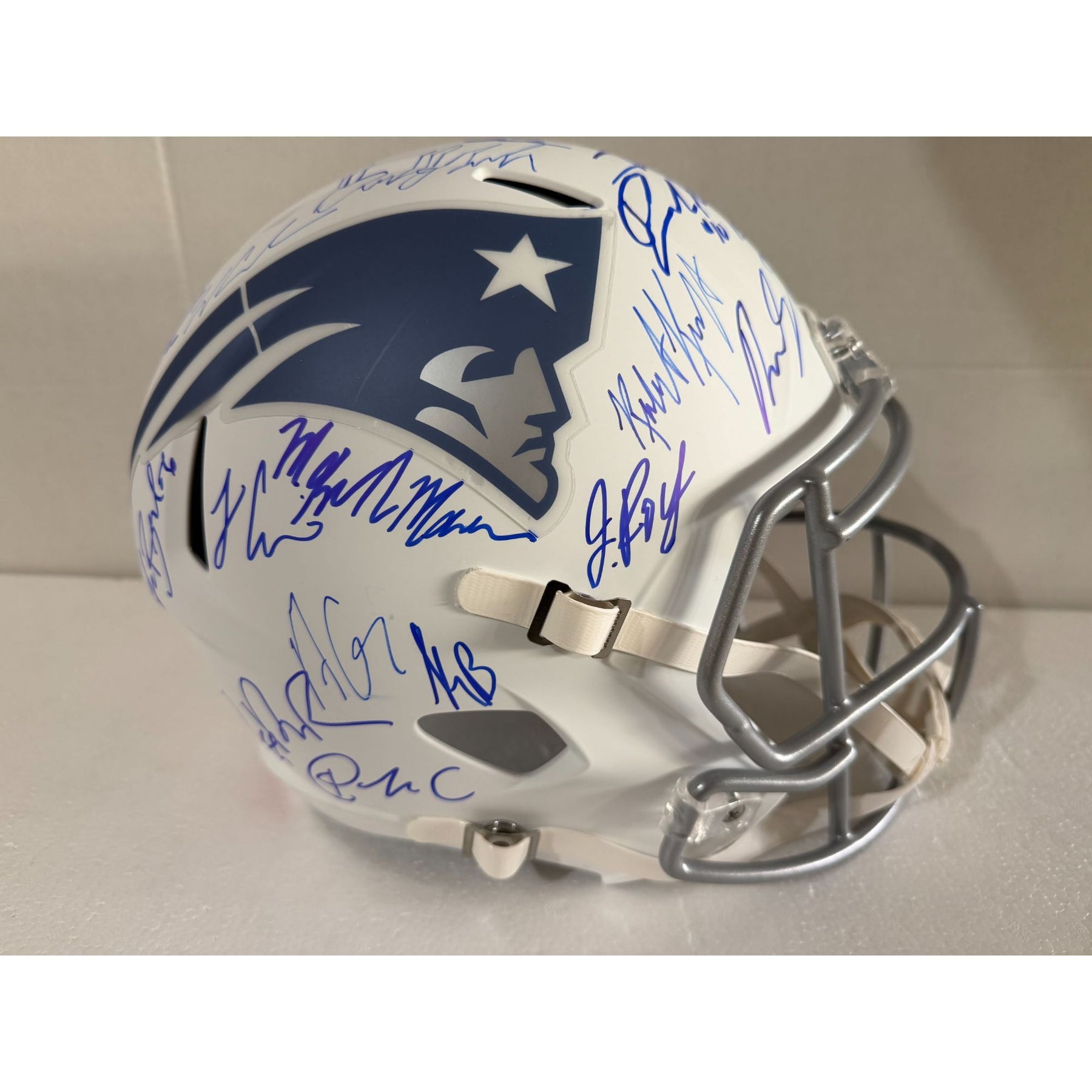 New England Patriots Drake Maye, Mike Vrabel, Robert Kraft 40 plus Riddell 2025 team signed helmet