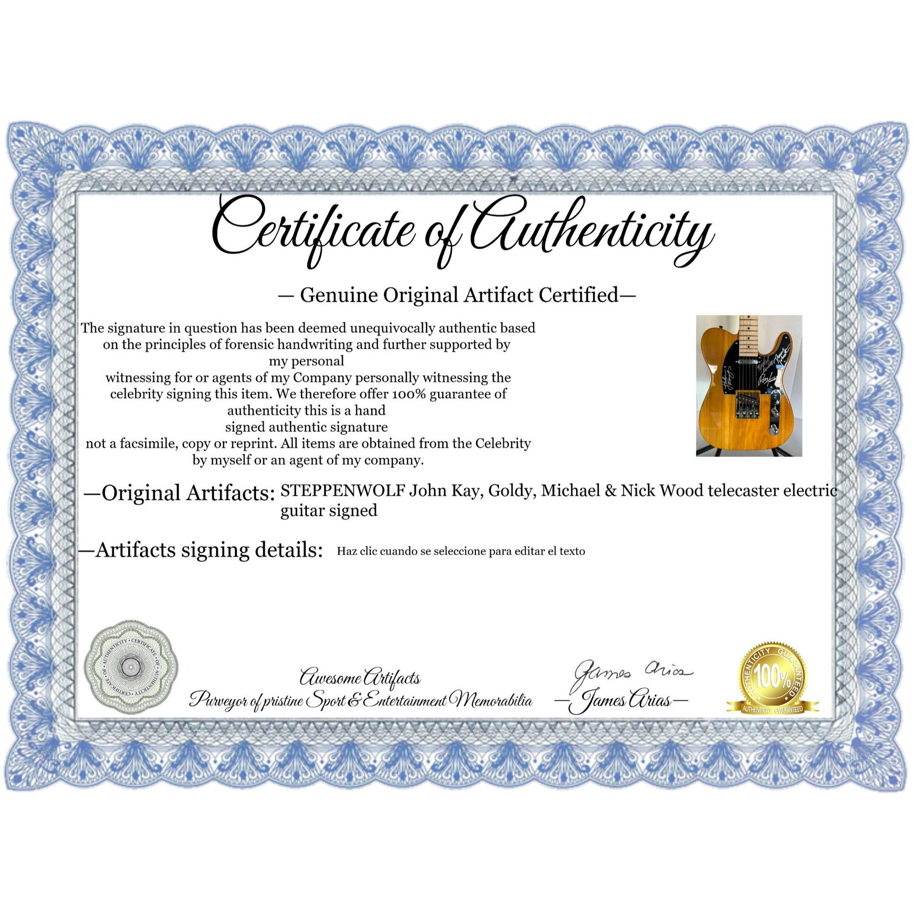 STEPPENWOLF John Kay, Goldy, Michael & Nick Wood telecaster electric guitar signed with proof $2995