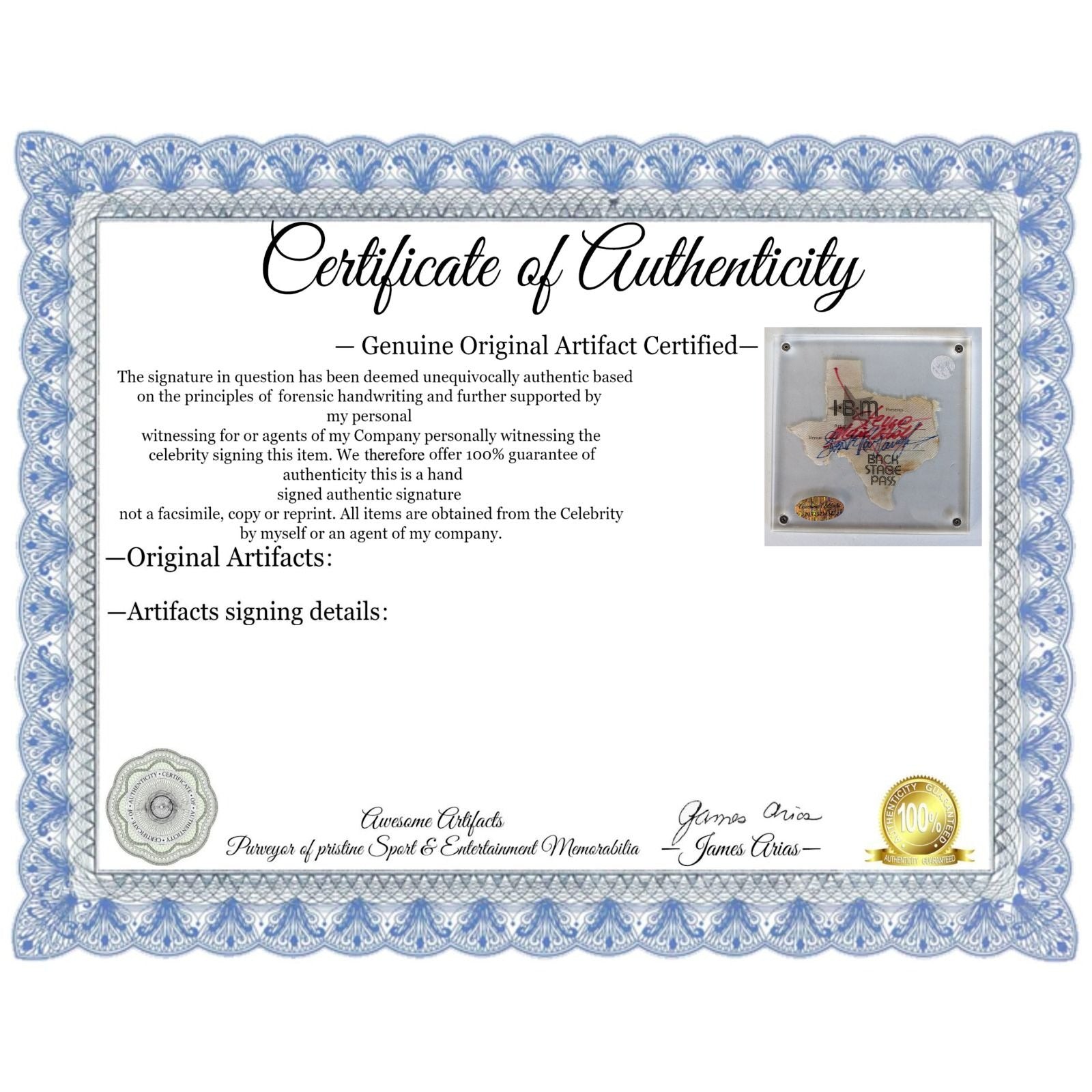 #3 All items which I sell come with a Certificate of Authenticity and with your certificate I will provide specific details, the date and location of where I obtained the signature(s). The nice thing here is I do not offer an opinion of authenticity rather you receive a guarantee of authenticity which I am able to offer as I have witnessed the items which I am offering actually being signed by the sports figure or celebrity.