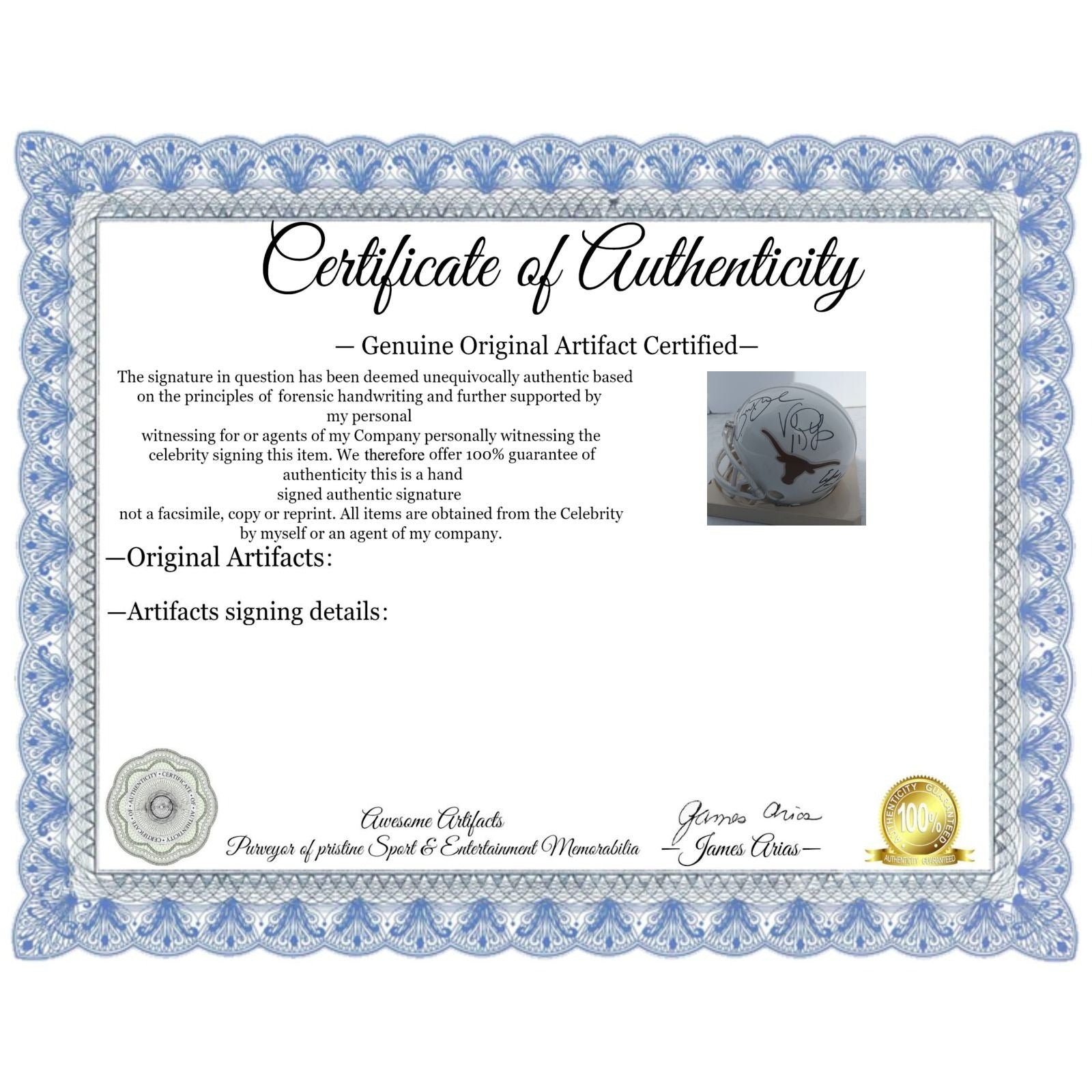 #2 you will receive a certificate of authenticity which will explain the date and location of where I obtained the signatures. Many companies offer an opinion of authenticity I am able to offer 100% guarantee of authenticity as I witness the item being signed personally and I support this claim with signing photos as well as the exact information of where the item was obtained I must say if you take a logical perspective you're getting much more from me than you would get from the so-called authentication companies that give nothing more than an opinion based on no scientific criteria whatsoever by the way