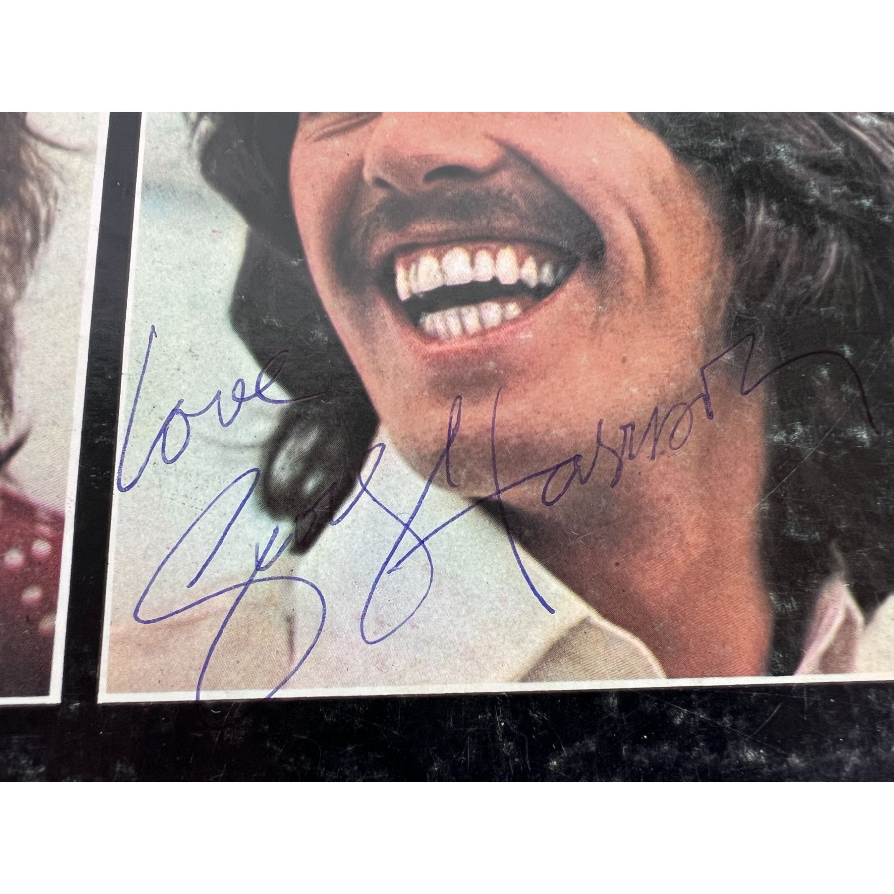 George Harrison signed for me on the movie set of the "Film Checking Out" which he was producing in Los Angeles California at the Biltmore Hotel in April of 1988.