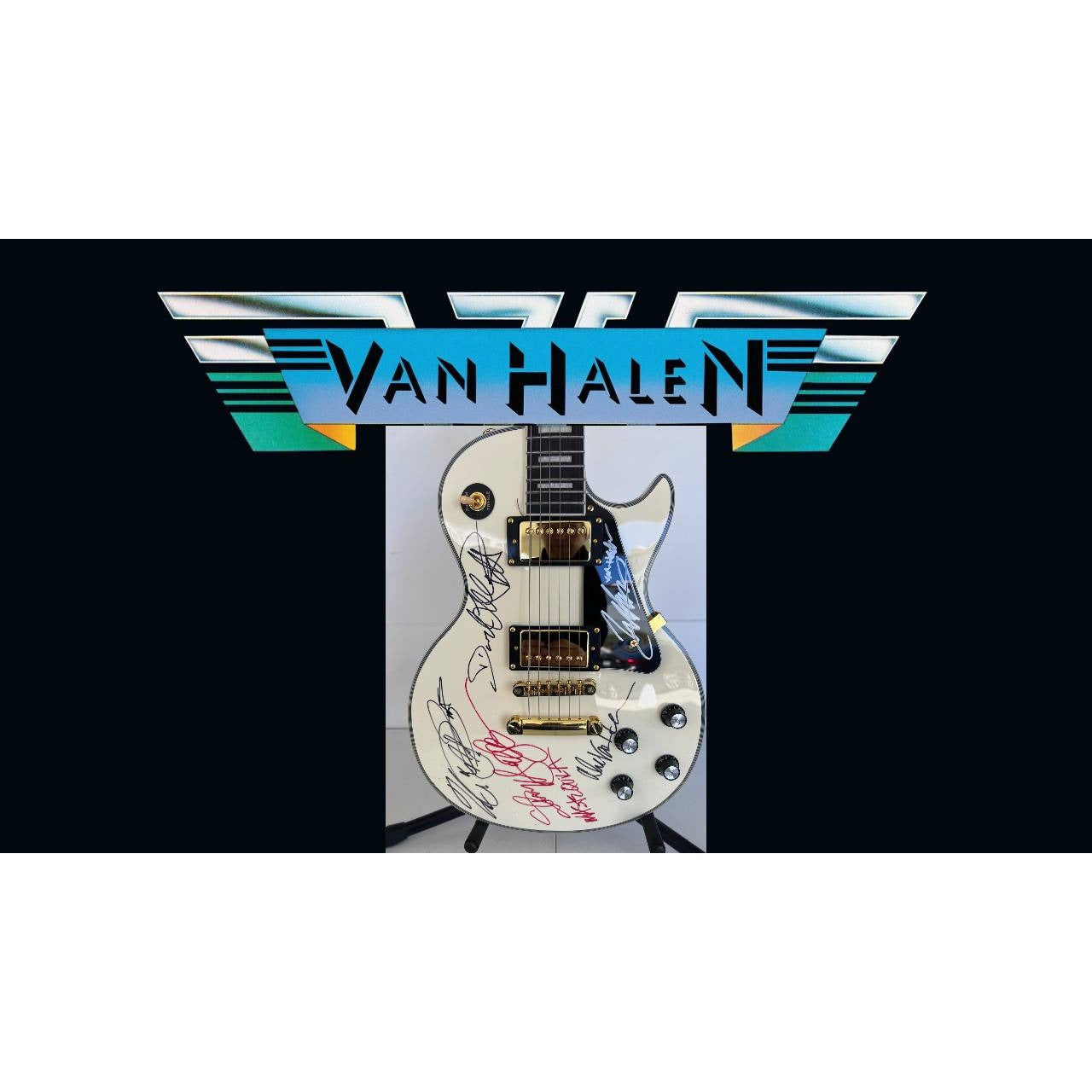 Van Halen vintage white les paul electric guitar Eddie & Alex Van Halen, Michael Anthony, David Lee Roth Sammy Hagar signed with proof. $6995