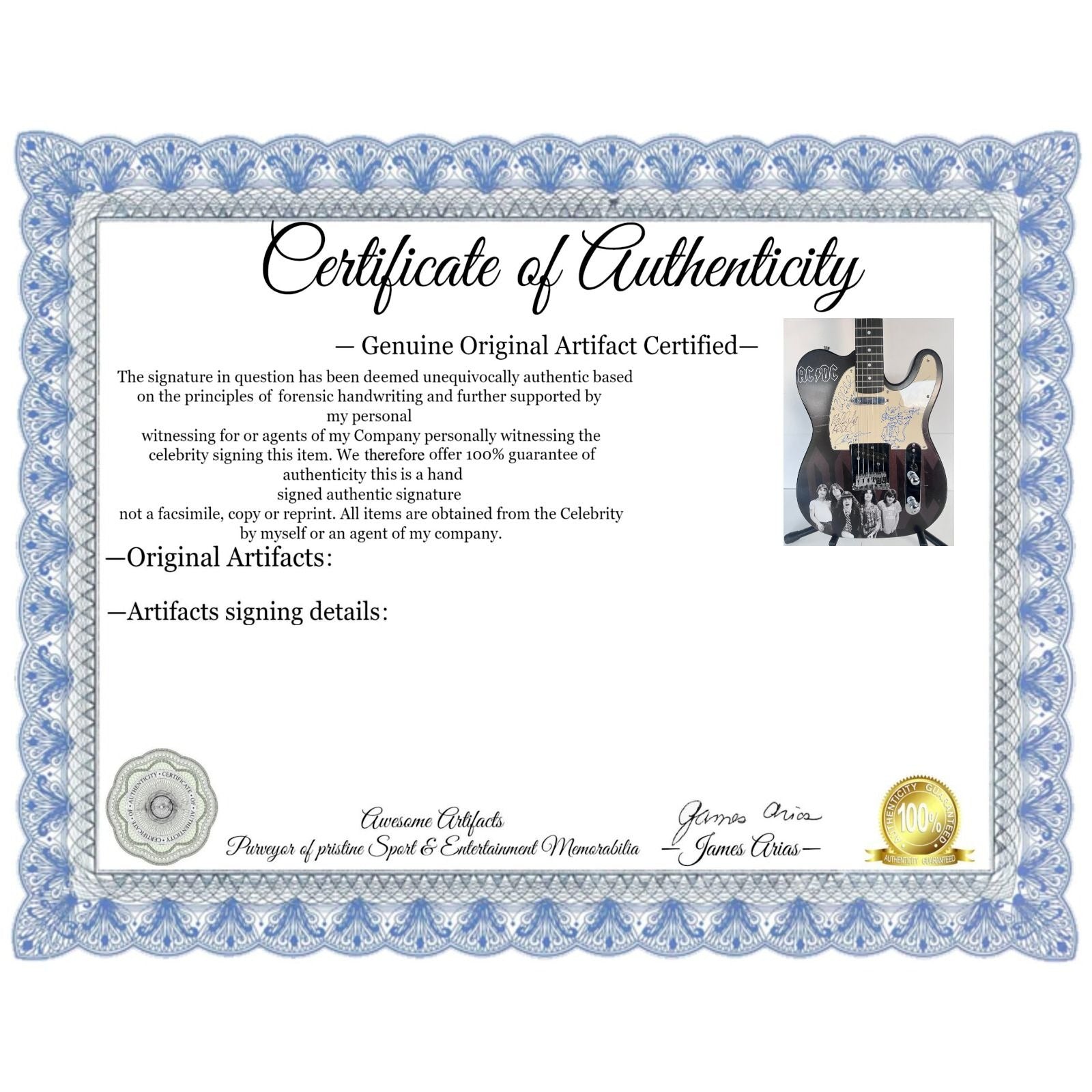 AC/DC, Bon Scott, Cliff Williams, Angus Young, Malcolm Young, Phil Rudd, one of a kind, telecaster, full size, electric, guitar signed with proof $9595