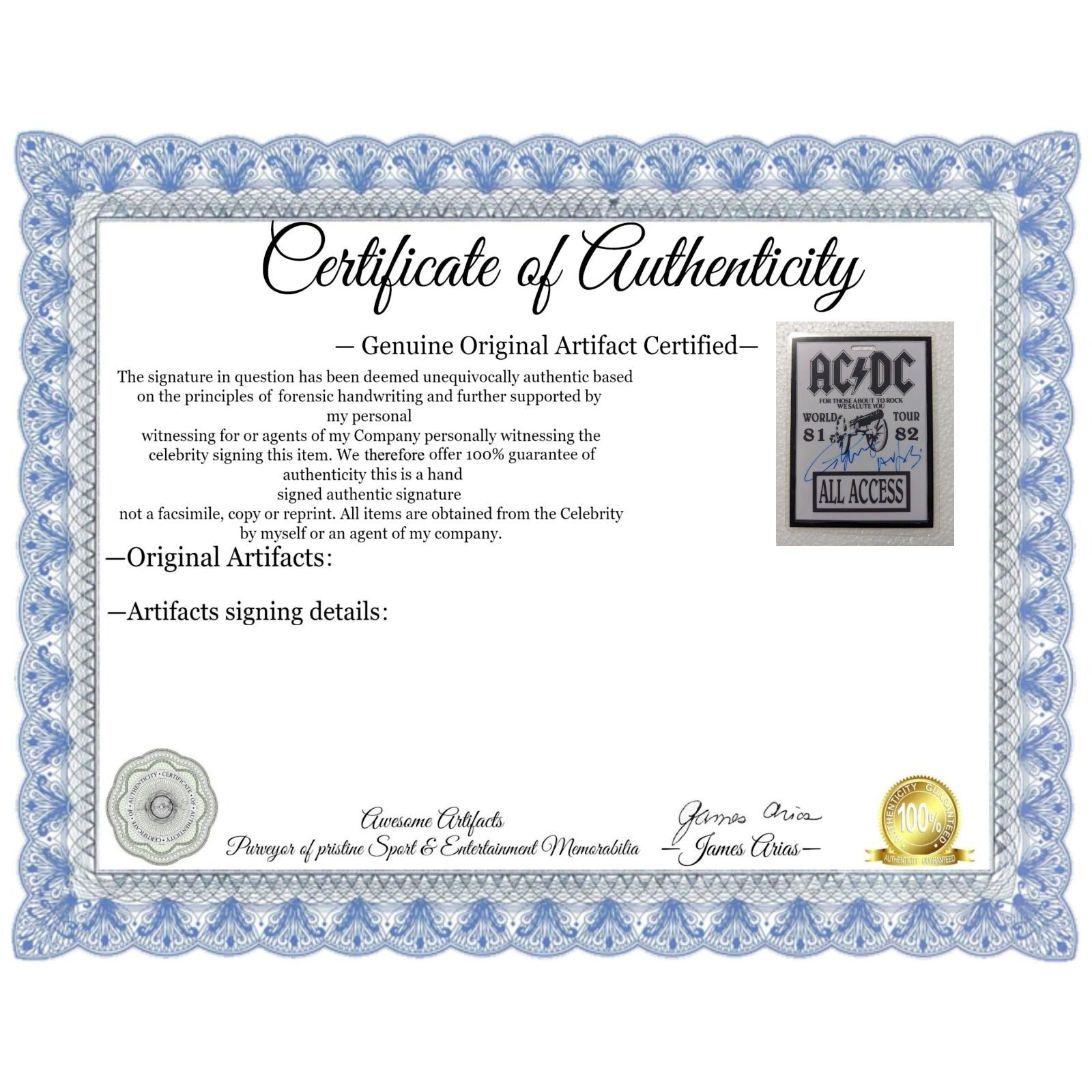 ACDC All Access vintage original tour pass signed by Angus Young