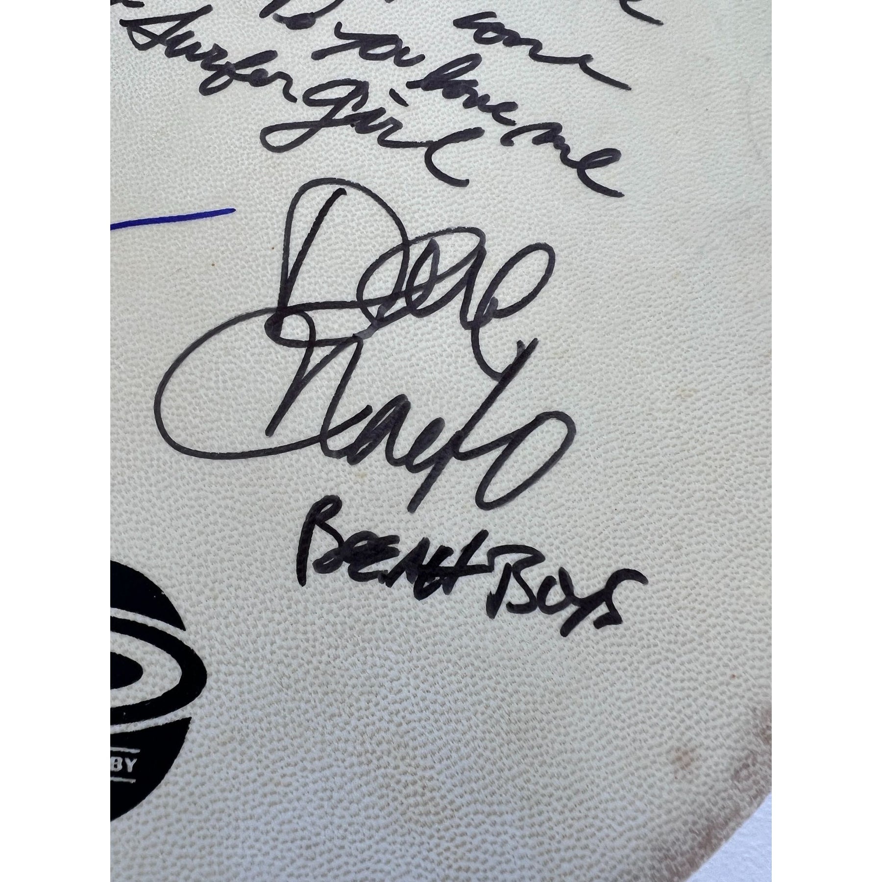 Beach Boys, Brian Wilson, Mike Love, Al Jardine, David Roberts (with lyrics) & proof tambourine 10' signed with proof $1299