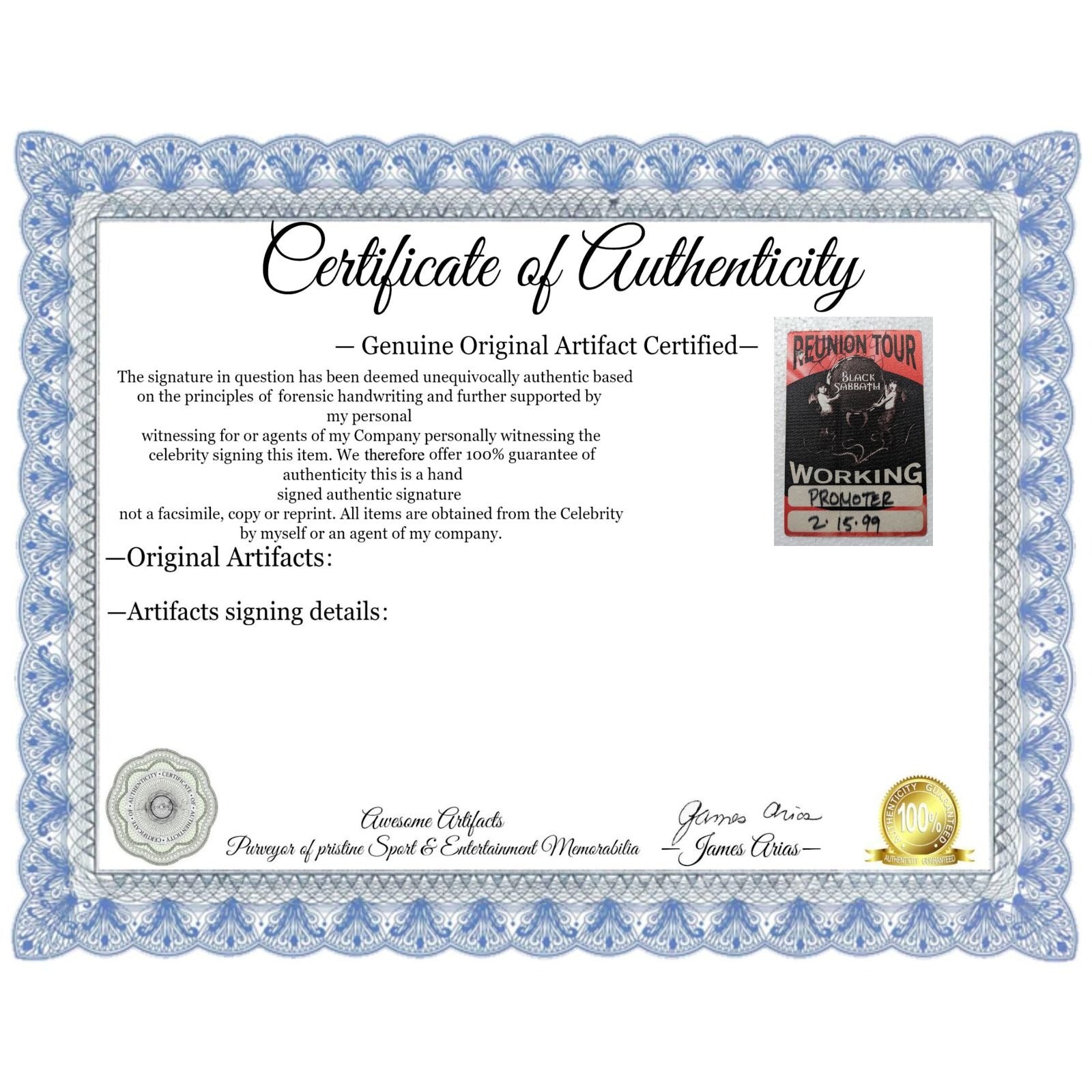 Black Sabbath tour pass signed Ozzy Osbourne $ 395
