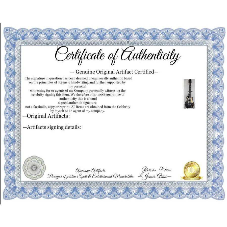 #2 you will receive a certificate of authenticity which will explain the date and location of where I obtained the signatures. Many companies offer an opinion of authenticity I am able to offer 100% guarantee of authenticity as I witness the item being signed personally and I support this claim with signing photos as well as the exact information of where the item was obtained I must say if you take a logical perspective you're getting much more from me than you would get from the so-called authentication companies that give nothing more than an opinion based on no scientific criteria whatsoever by the way