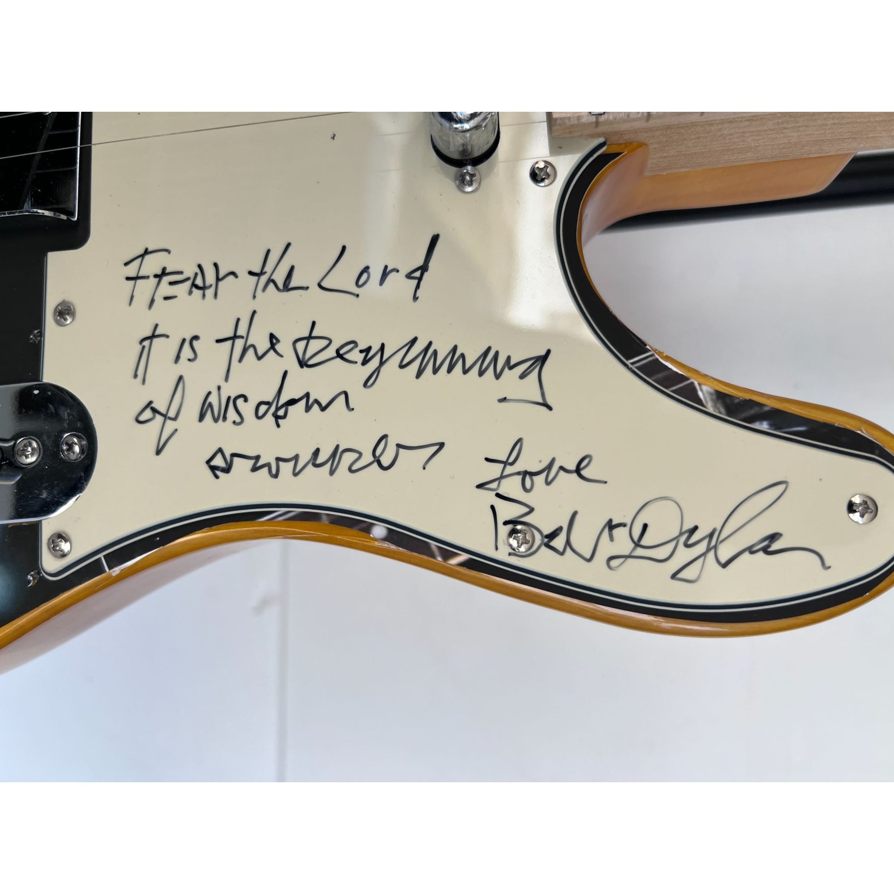 Bob Dylan signed with inscription   one of a kind full size electric guitar signed with proof.