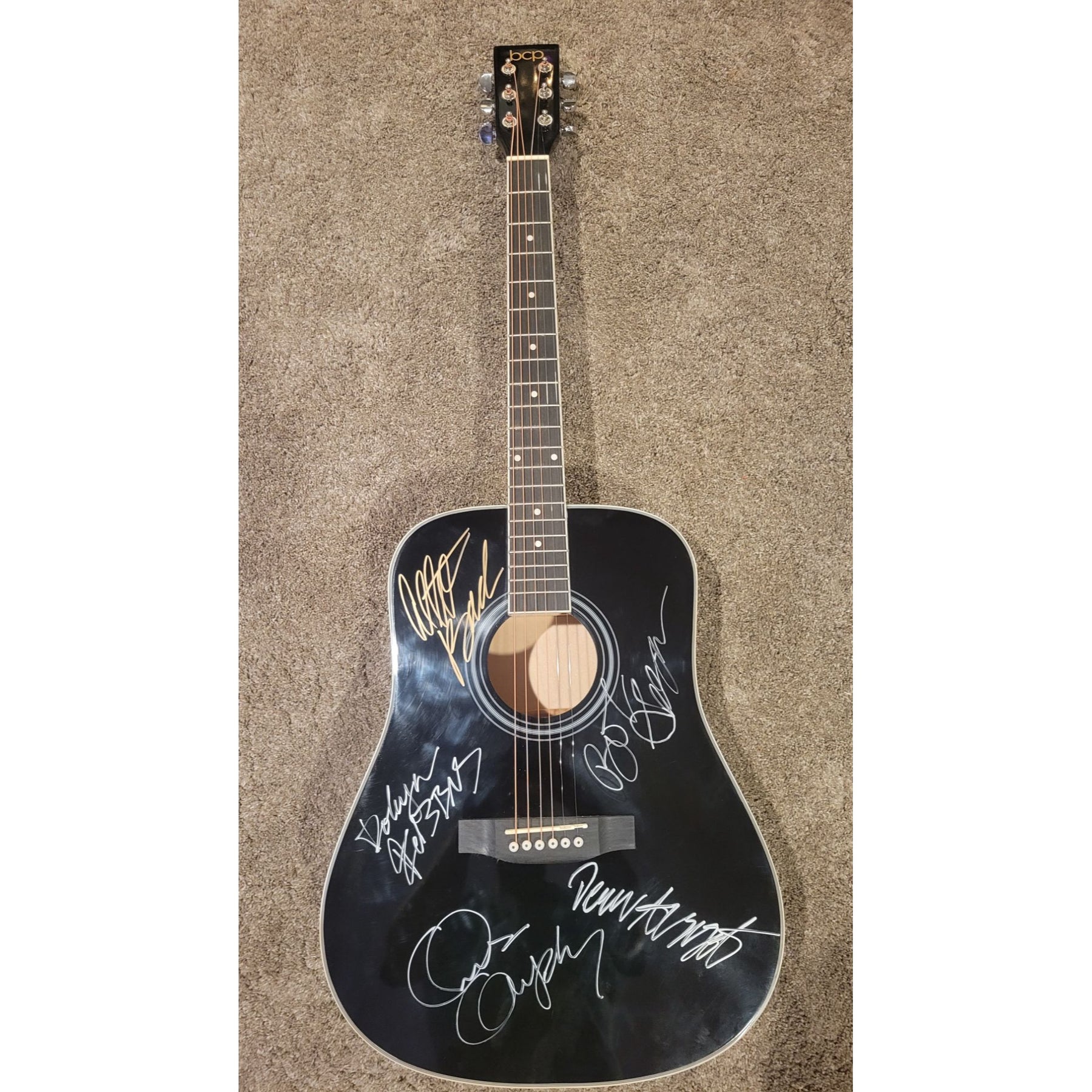 Bob Segar and The Silver Bullet Band Alto Reed, Chris Campbell, Robyn Robbins, and Drew Abbot full size acoustic guitar signed with proof.