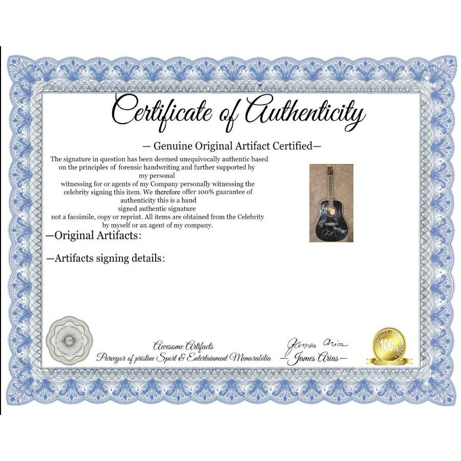 Bob Segar and The Silver Bullet Band Alto Reed, Chris Campbell, Robyn Robbins, and Drew Abbot full size acoustic guitar signed with proof