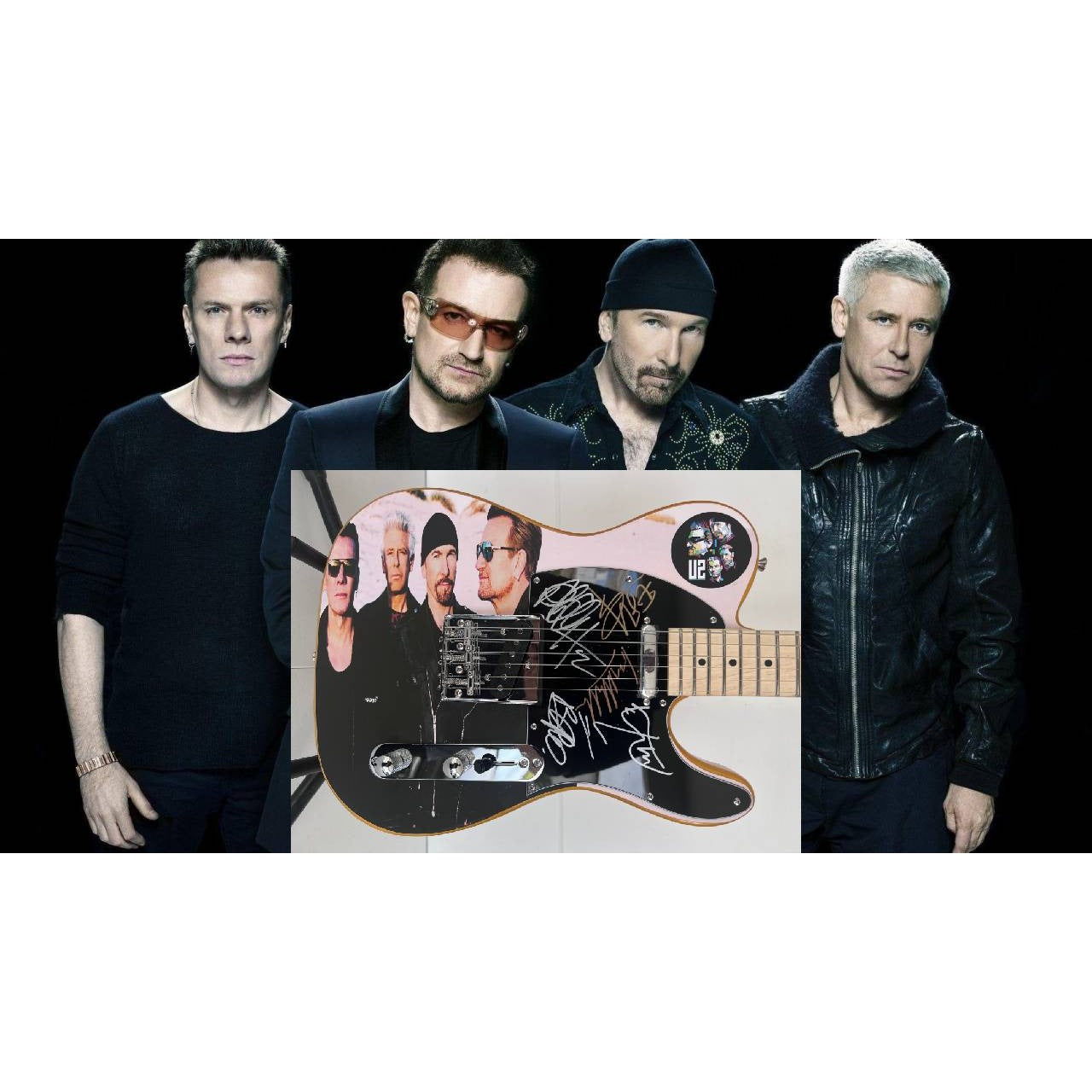 Bono The Edge Larry Mullen Adam Clayton U2 Logo Telecaster full size electric guitar signed with proof