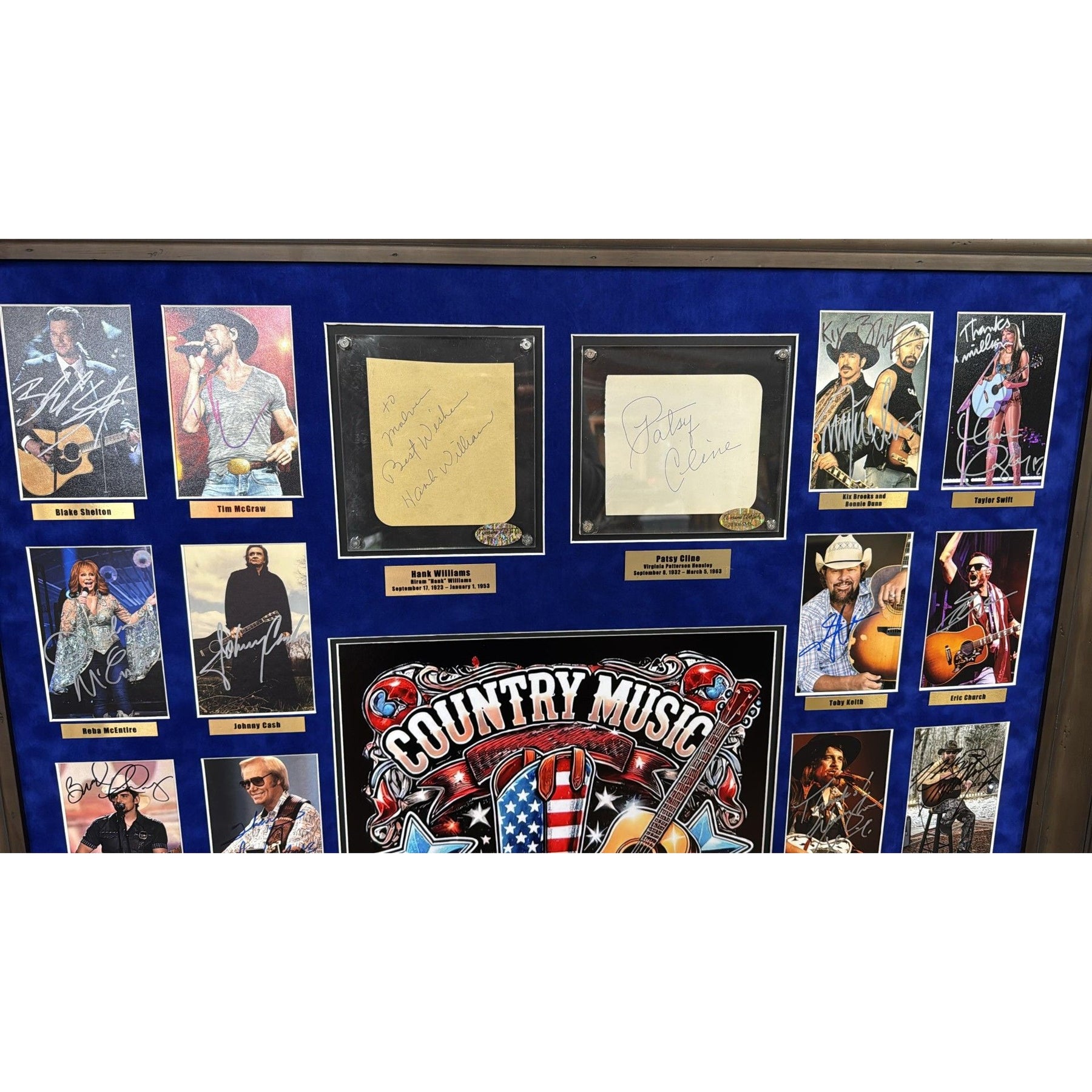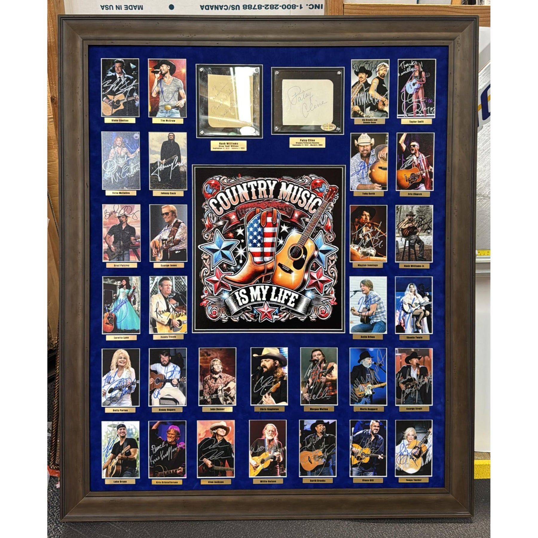 Country, Music, Icons, Hank Williams, Patsy Cline, Johnny Cash, Dolly Parton, Kenny Rogers (33) legends signed this one of a kind piece with museum quality frame 40x48 $11,995
